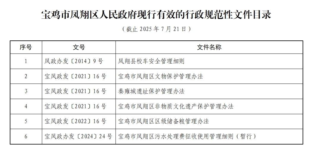 宝鸡市凤翔区人民政府现行有效的行政规范性文件目录