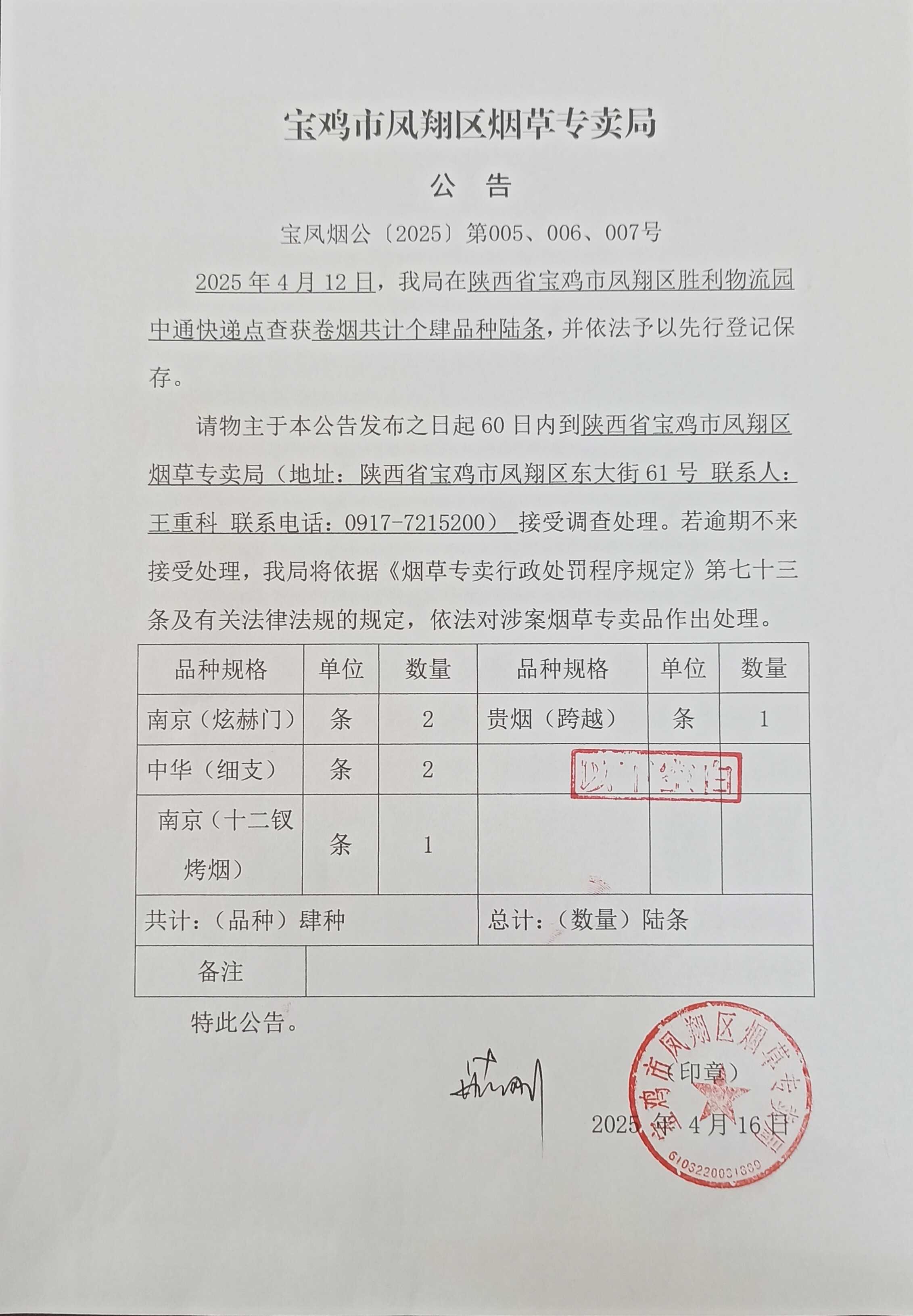 宝鸡市凤翔区烟草专卖局公告 宝凤烟公〔2025〕第005、006、007号