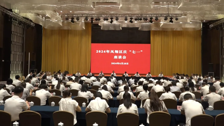 6月28日,凤翔区举办2024年庆“七一”座谈会。庆祝中国共产党成立103周年,回顾党的光辉历程,传承红色基因,激发爱国热情。区委常委、组织部部长刘飞参加会议。