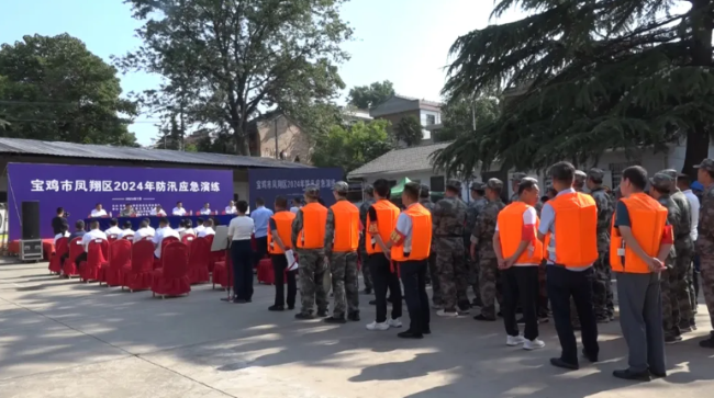 7月2日,凤翔区开展2024年防汛应急演练活动。区级领导霍友民、刘永强现场观摩演练情况。