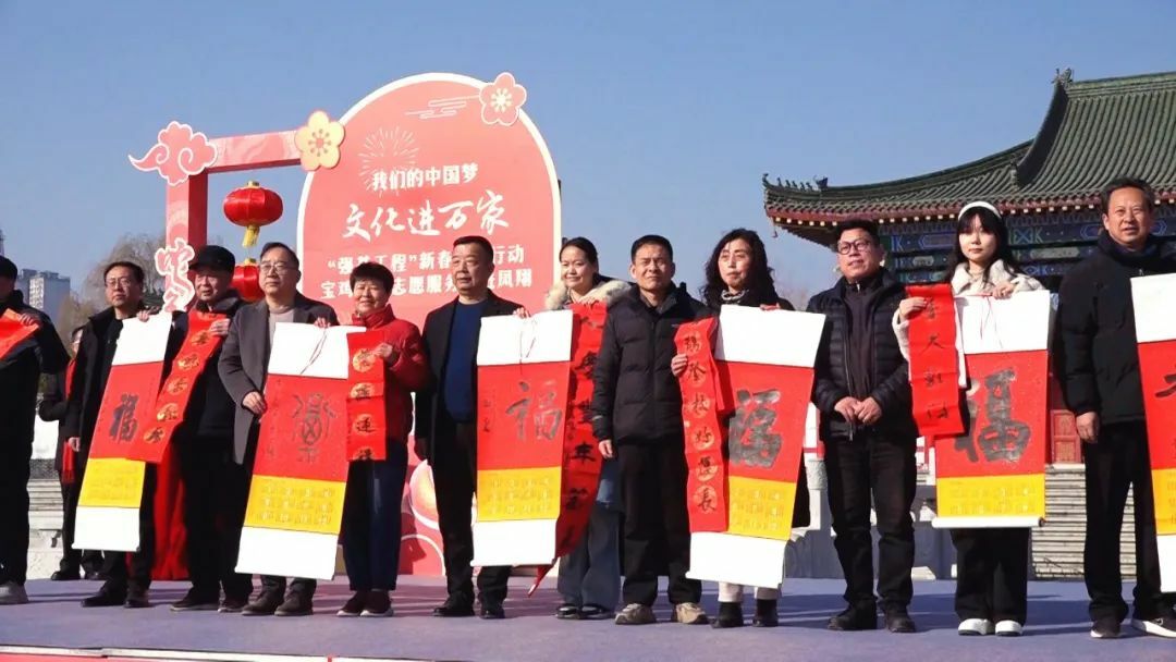 活动现场,市书协、区书协书法家为我区群众代表赠送春联、福字;市文联、凤翔区、市摄协领导为我区先进代表赠送全家福照片;市文联为我区赠送楹联书法作品。