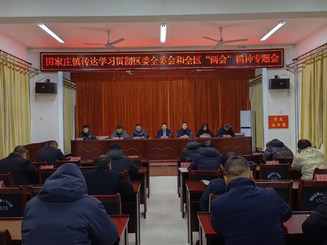 1月15日上午,田家庄镇召开学习贯彻区委全委会和全区两会精神专题会议,镇副科级以上领导干部、各村党支部书记、机关全体干部及驻村工作队参加会议。