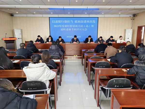为总结成绩,谋划新年工作,进一步激发机关干部干事创业激情,持续巩固主题教育成果,不断提升工作能力和水平。1月25日下午,糜杆桥镇举行了“以述促行强担当砥砺奋进再出发”——2023年度机关站(办)所述职述廉考核评议大会议。镇领导班子成员、机关全体成员参加会议。