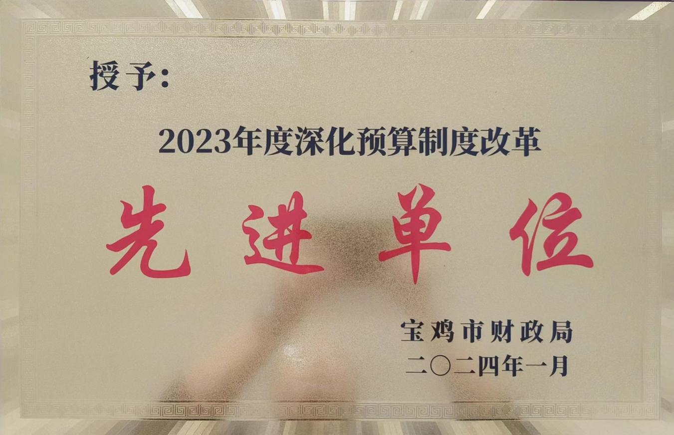 1月29日,宝鸡市财政局召开全市财政工作会议,区财政局荣获2023年度深化预算管理制度改革先进单位称号。