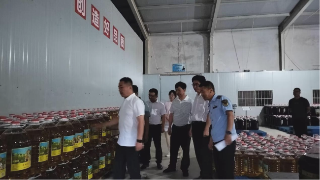 为深入落实食品安全“两个责任”,扎实推进分层分级包保工作,6月11日下午,副区长吴国良、区市场监督管理局分管领导、南指挥镇主要领导赴陕西国之香油脂有限公司开展食品安全“两个责任”包保督导检查。