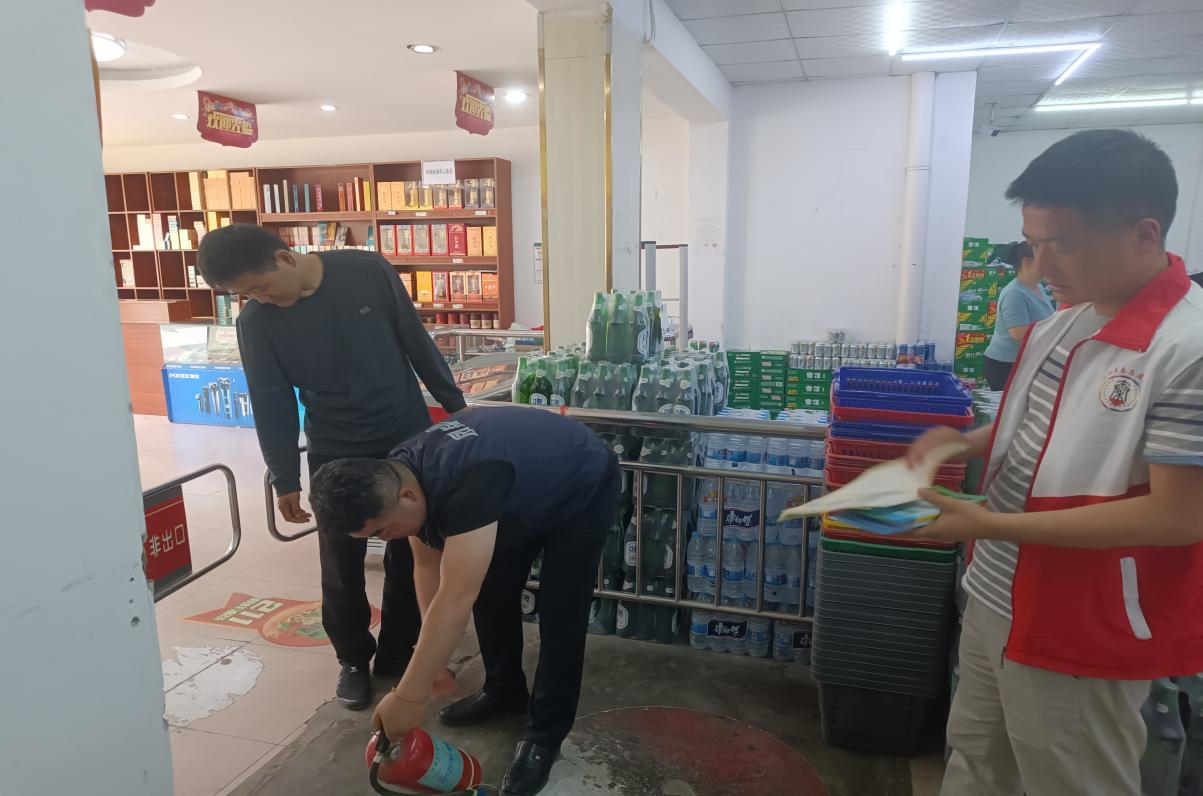 为进一步加强镇域内安全生产工作,切实消除各类不安全因素,镇应急办、交通站及城建办深入镇区超市、商店等人员密集场所,重点检查消防通道是否畅通,消防设施是否齐全,灭火器是否在有效期,电线是否存在老化现象等隐患,并向其发放消防安全常识、交通安全手册等宣传资料。