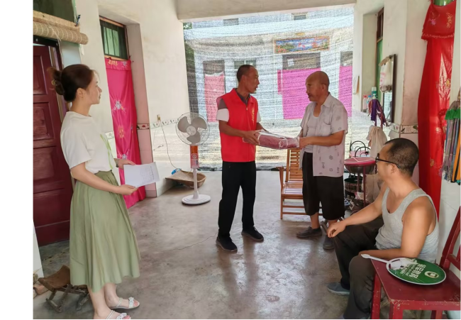 连日来,持续高温天气,彪角镇红十字会心系镇村困难家庭,近日,联合各村红十字会共同开展“爱心捐被,被感温情”送清凉活动,为辖区困难家庭送去“清凉大礼包”,用实际行动把关心关爱送到他们身边。