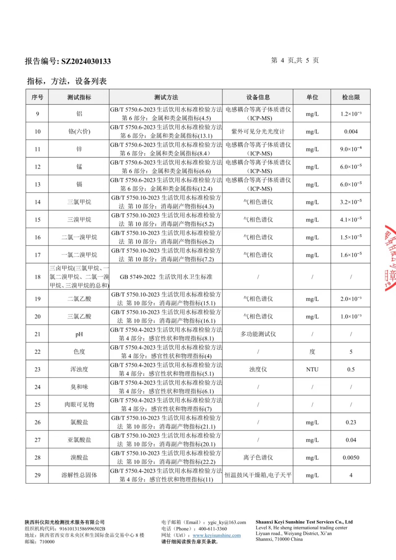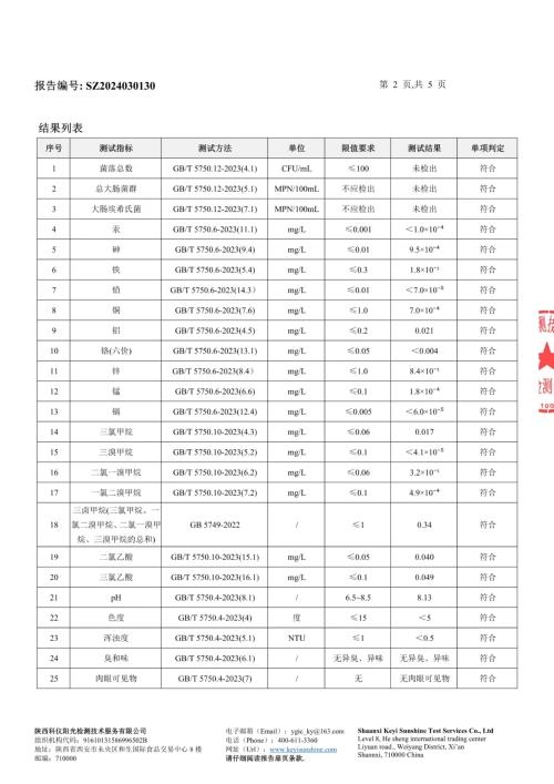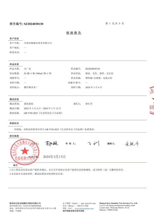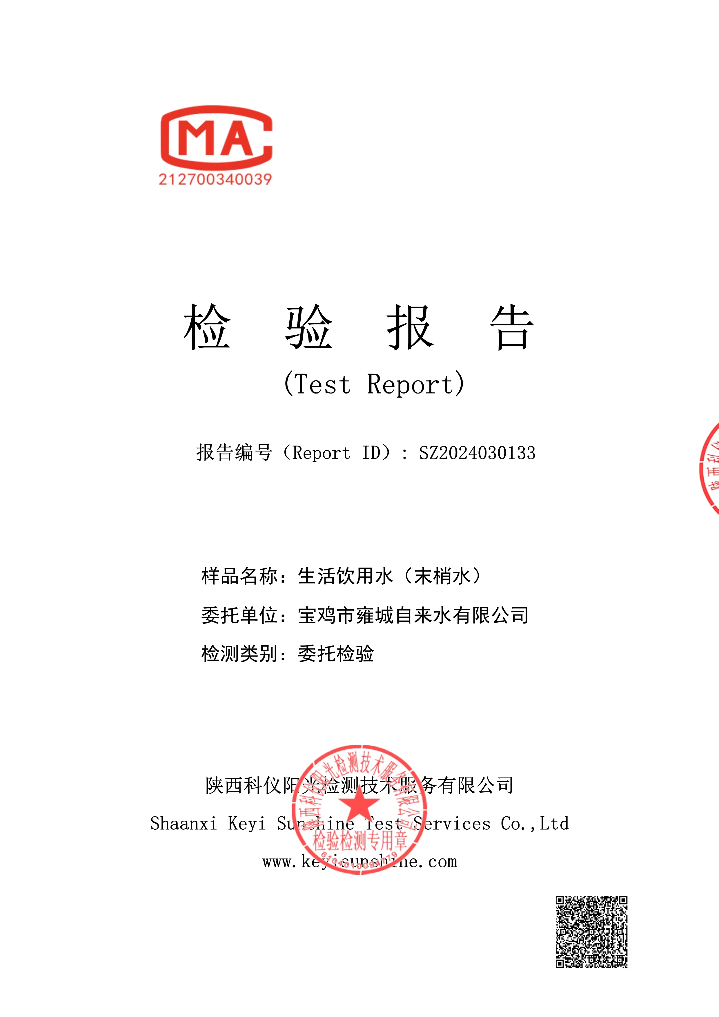 宝鸡市雍城自来水有限公司2024年第一季度出厂水、末梢水水质检测报告