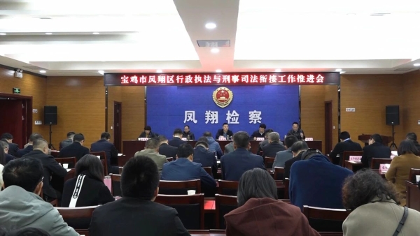 11月11日,凤翔区召开行政执法与刑事司法衔接工作推进会。区级领导郭亚波、王晓锋、李忠、邓思文参加会议。