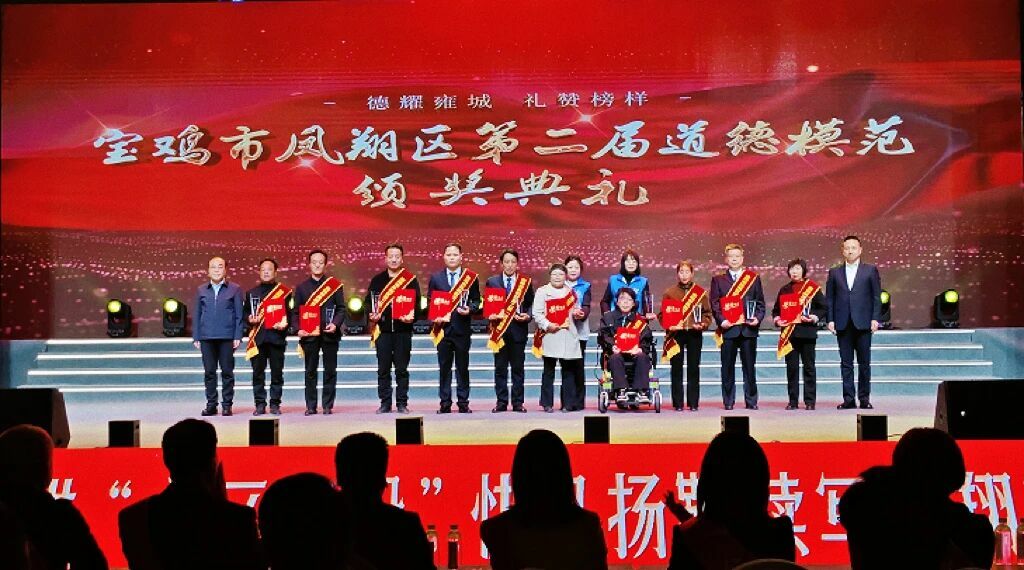 此次道德模范评选表彰活动,是凤翔区深化精神文明建设工作的重要举措。21名道德模范,经各镇各部门广泛动员、层层推荐,历经实地考察、集体审议等严格程序遴选产生,涵盖敬业奉献、助人为乐、孝老爱亲、自强励志、扶危济困五类,他们都是来自基层、扎根群众的平凡人,用坚守与奉献、善良与担当,在平凡的生活中书写了不平凡的道德篇章。区委、区政府号召,全区广大干部群众要以道德模范等先进典型为榜样,自觉崇尚模范、学习模范、关爱模范、争当模范,把道德模范的榜样力量转化为建设美德之城的生动实践。德耀雍州,薪火相传。全区上下将以此次颁奖典礼为契机,持续深化典型培育选树工作,按照“整体联动、先进带动、结构合理、均衡持续、典型辈出”的思路,培树更多群众认可、时代特征鲜明的先进典型,让道德之光照亮城市每个角落,让“笃志润德”的价值导向落地生根,把榜样的力量转化为推进中国式现代化建设陕西新篇章的凤翔实践,为全区上下抢抓中央一揽子政策机遇,提供强大精神力量和有力道德支撑。