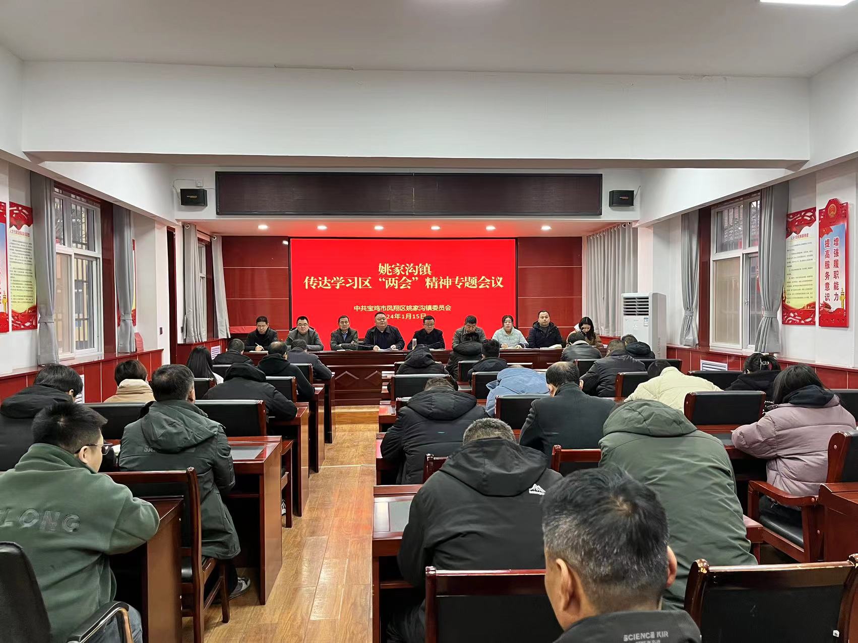 1月15日,姚家沟镇召开专题会议传达学习区两会精神,镇领导班子成员、各村、社区党支部书记、驻村工作队全体成员、机关全体干部参加会议。