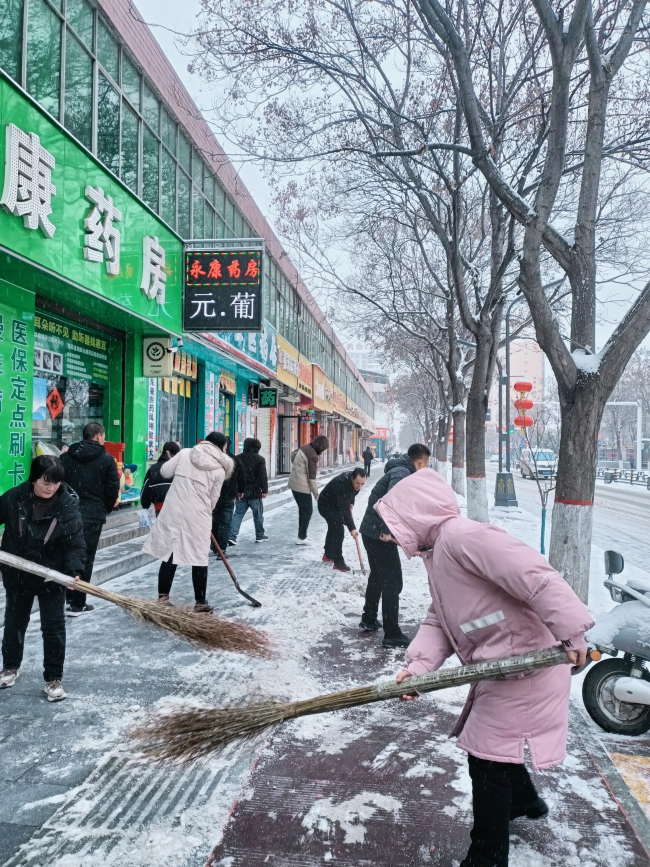 局领导带领全单位干部,在区政府院内、秦凤路北段开展清雪除冰活动。尽管寒风凛冽,天空中还飘着雪花,大家依旧热情不减,手拿扫帚、铁锹等铲雪工具,对人行通道进行了全方位的清理,忙碌的身影构成了一道靓丽的风景线。