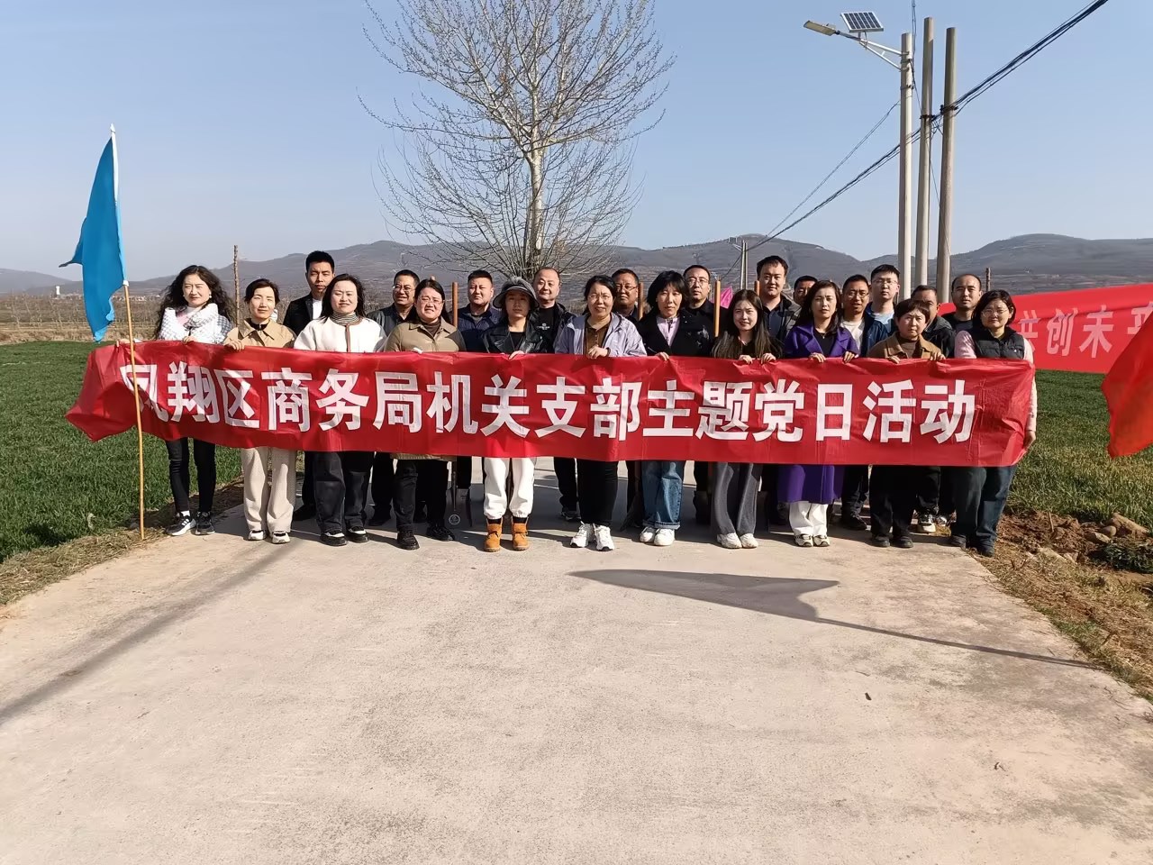 在义务植树现场,区商务局机关干部、党员群众等共计20余人在镇村的相互配合下,挥锨铲土、扶苗填坑、培土浇水,干劲十足,种下一棵棵希望的树苗。新栽植的小树迎风而立、生机盎然,为美丽的凤翔再添新绿。