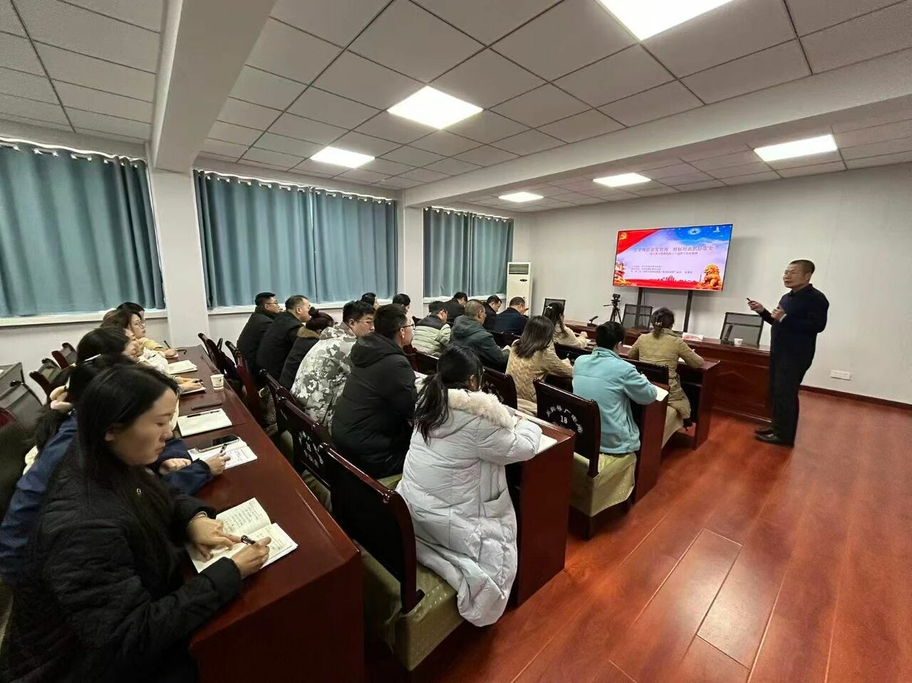 宣讲中,市委“星火宣讲团”成员,市水资源事务中心主任霍繁贵和区委党校讲师及发改局有关同志围绕《立足岗位奋发有为 对标对表抓好落实——深入学习贯彻党的二十届四中全会精神》《续写新篇章 开创新局面——党的二十届四中全会精神》《深学笃行党的二十届四中全会精神,勇担“十五五”现代化新使命》《浅谈国防动员和人民防空》等内容进行讲解。用通俗化语言、案例化解析,理论联系实际的方式,对党的二十届四中全会精神作了深刻解读,引发了基层干部、宣传干事、新闻记者和社区群众的强烈共鸣。