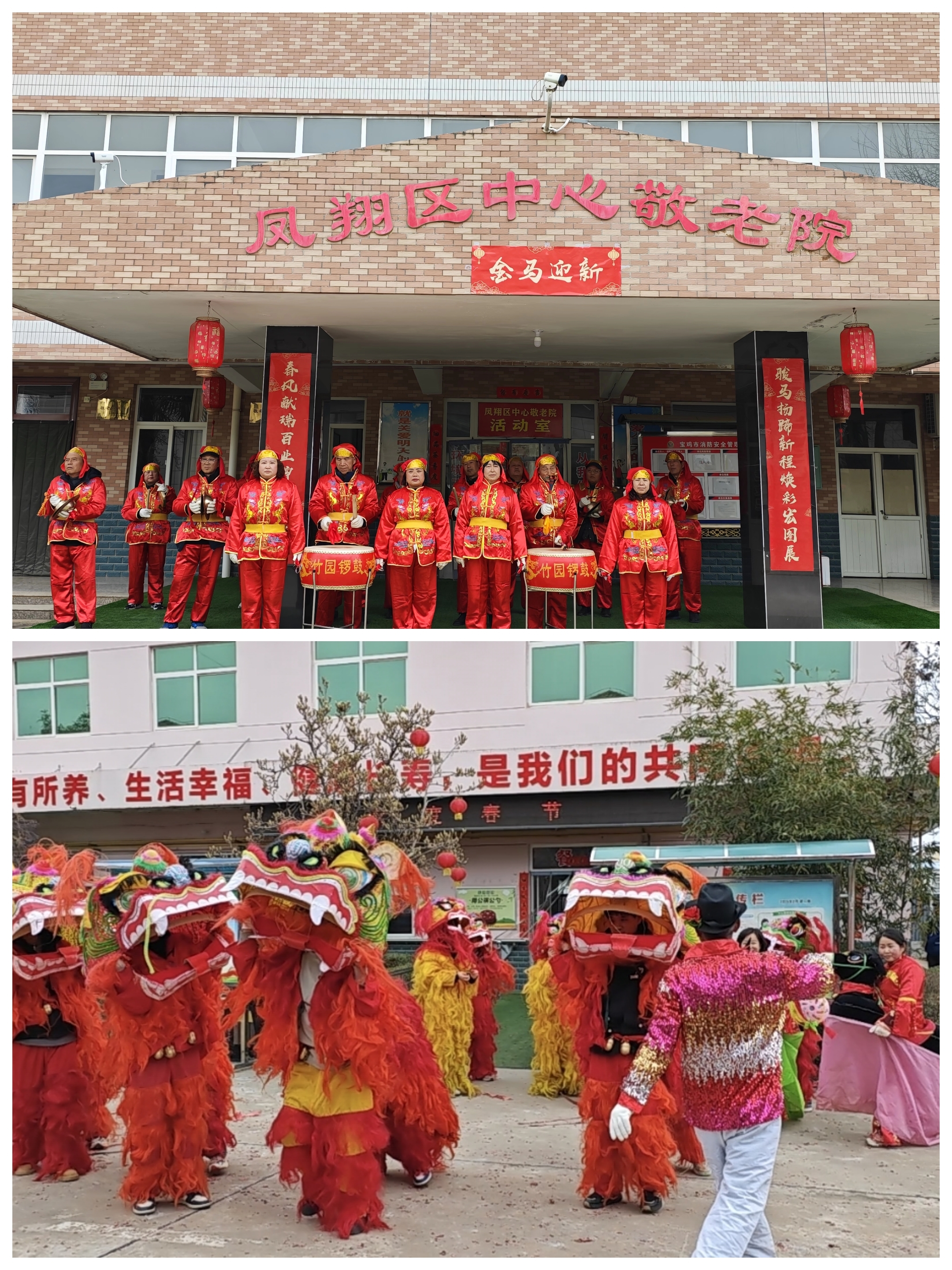锣鼓喧天辞旧岁,社火迎春暖人心。在元宵佳节来临之际,为弘扬尊老敬老传统美德,让敬老院老人感受传统民俗风情的舞狮表演。3月2日,正值丙午马年正月十四,糜杆桥镇竹园社火队走进凤翔区中心敬老院,开展特色社火游演活动,为全院特困老人带来了精彩的社火表演。震天的锣鼓,飞舞的龙狮,摆动的旱船,既营造了喜庆浓郁的节日氛围,又让老人们享受了一场欢快的文化盛宴。