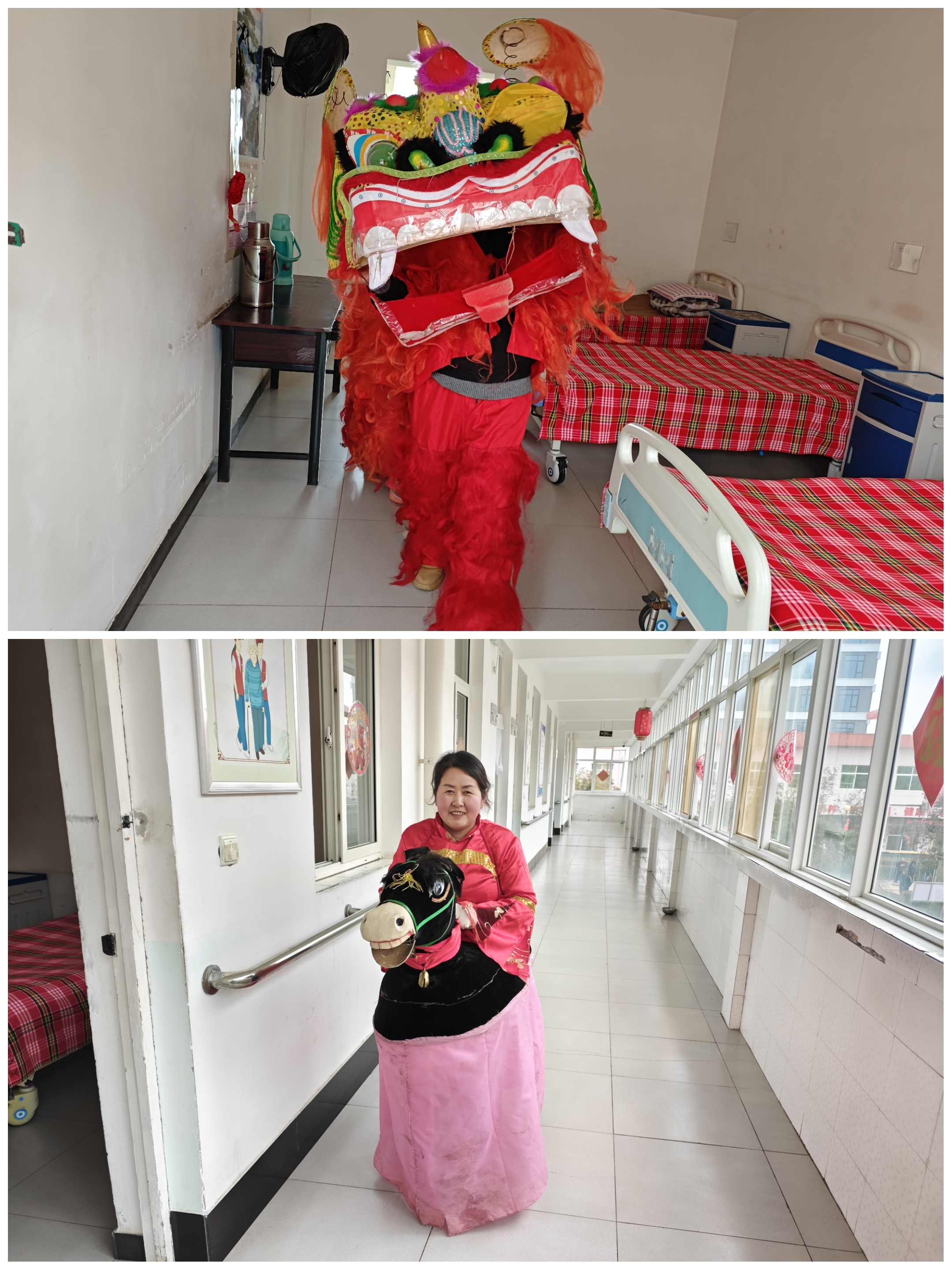下午时分,伴随着震耳欲聋的鞭炮声和铿锵有力的锣鼓声,社火游演正式拉开帷幕。游演队伍身着节日盛装,精神抖擞地步入敬老院。四只雄狮腾挪跳跃,摇头摆尾,活灵活现,引得老人们阵阵喝彩。紧随其后的旱船表演诙谐有趣,将节日的气氛一次次推向高潮。让老人们流连忘返,欢呼声、助威声此起彼伏,敬老院里处处弥漫着欢乐祥和的氛围。