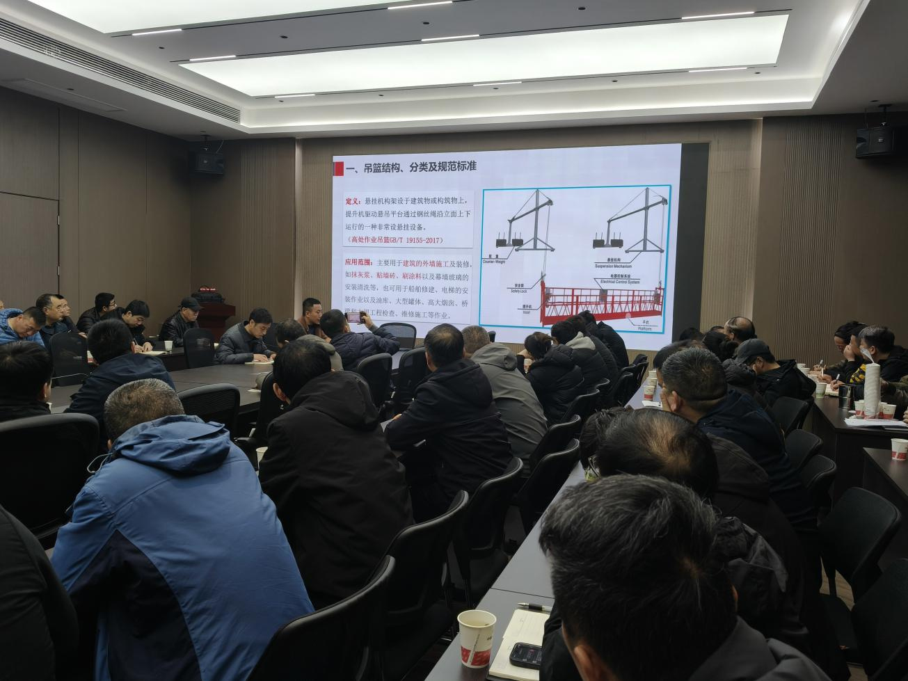 本次培训特邀市行业专家授课,围绕施工吊篮、施工升降机等设备安全管理展开系统讲解。专家结合典型案例,解读设备安拆、现场验收等关键流程标准,明确各环节操作规范;重点讲解吊篮日常使用期间安全管控重点,对现场巡检、维护保养及危险工况处置等要求进行细致拆解,为一线管理人员提供了清晰的操作指南。