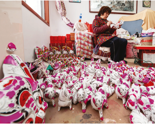 非遗传承人胡小红给泥塑上色 谢克强摄