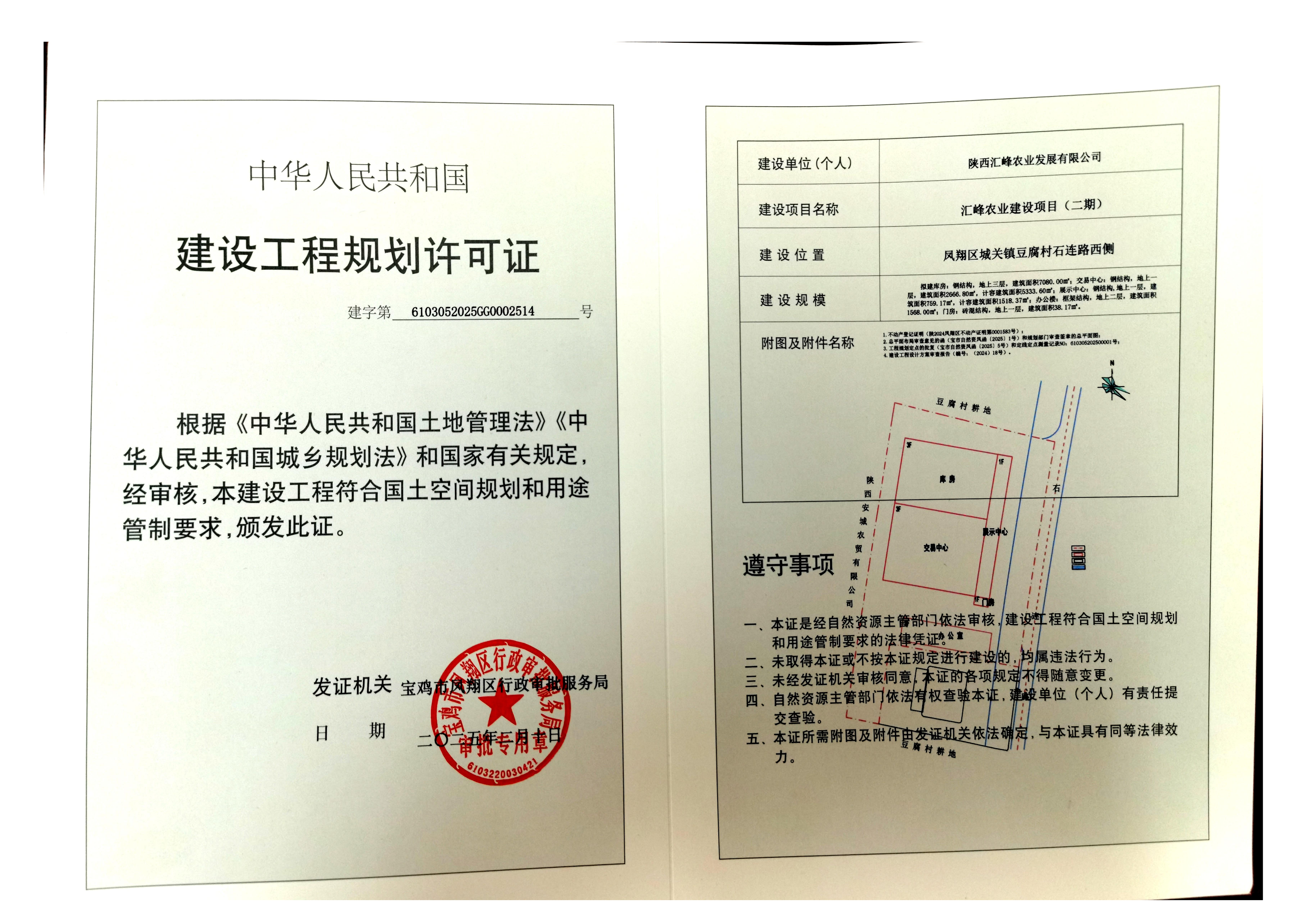 关于汇峰农业建设项目(二期)建设工程规划许可证的批后公布