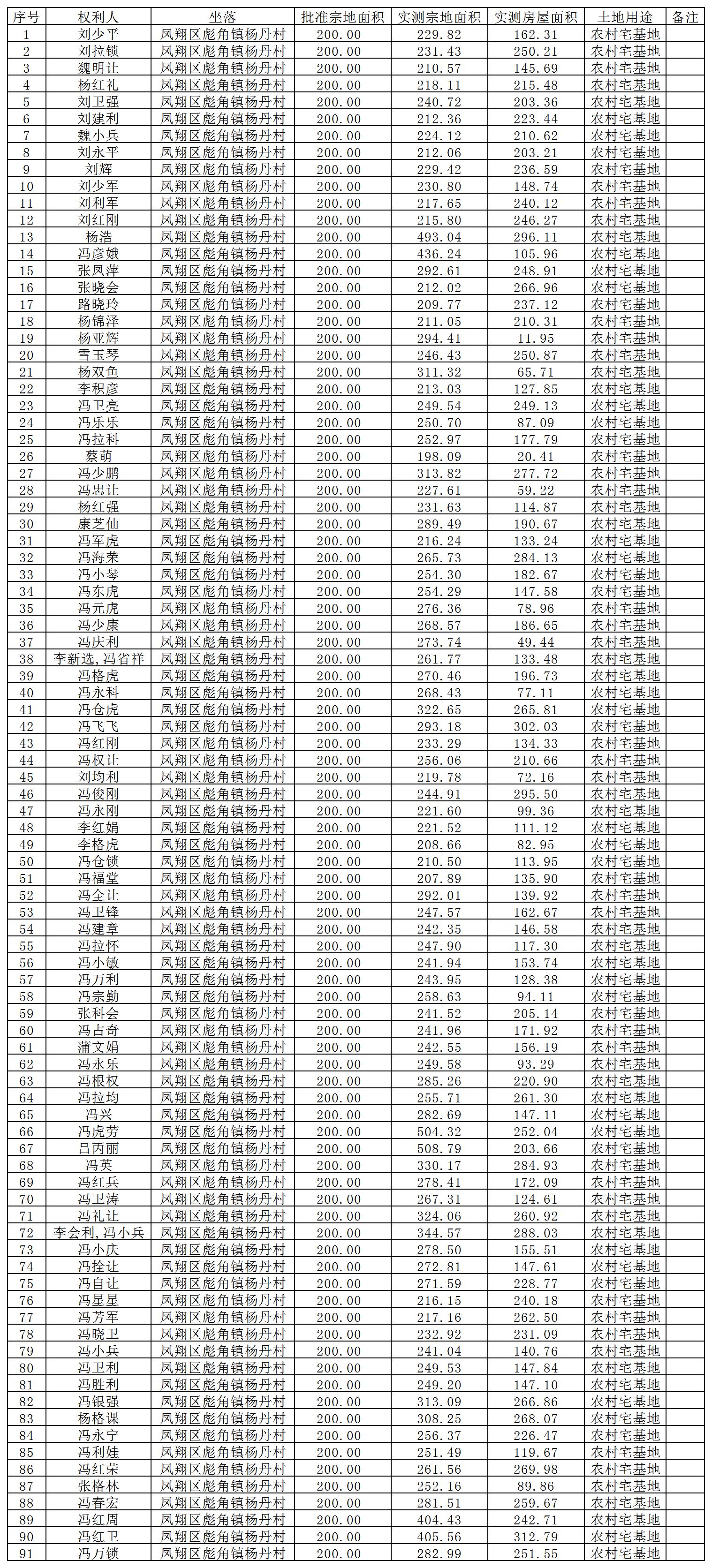 附件:彪角镇杨丹村宅基地使用权及房屋所有权首次登记公示名单
