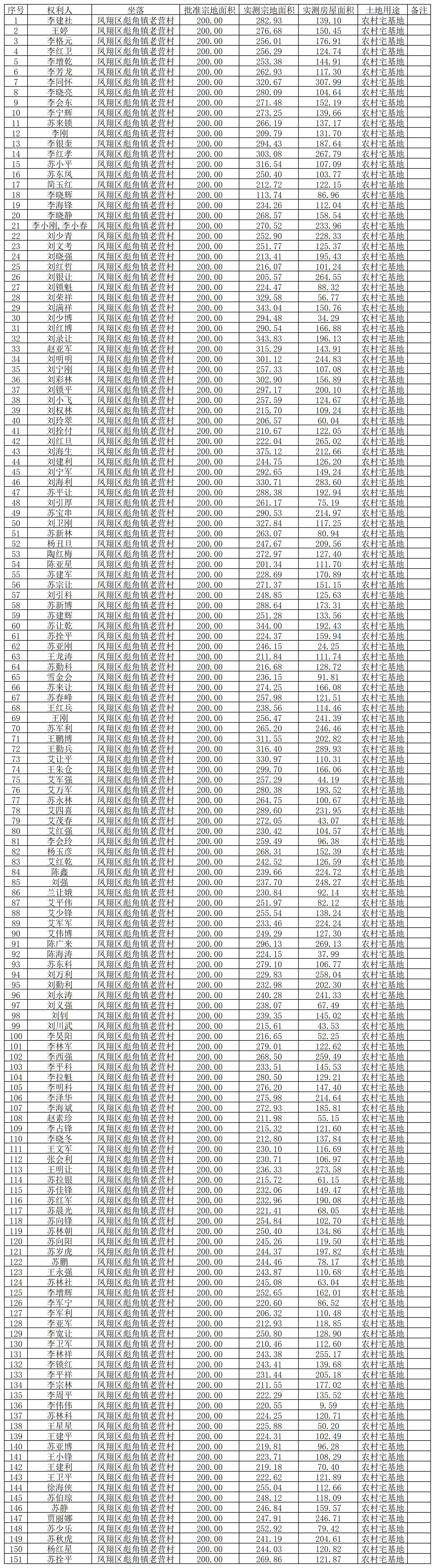 附件:彪角镇老营村宅基地使用权及房屋所有权首次登记公示名单