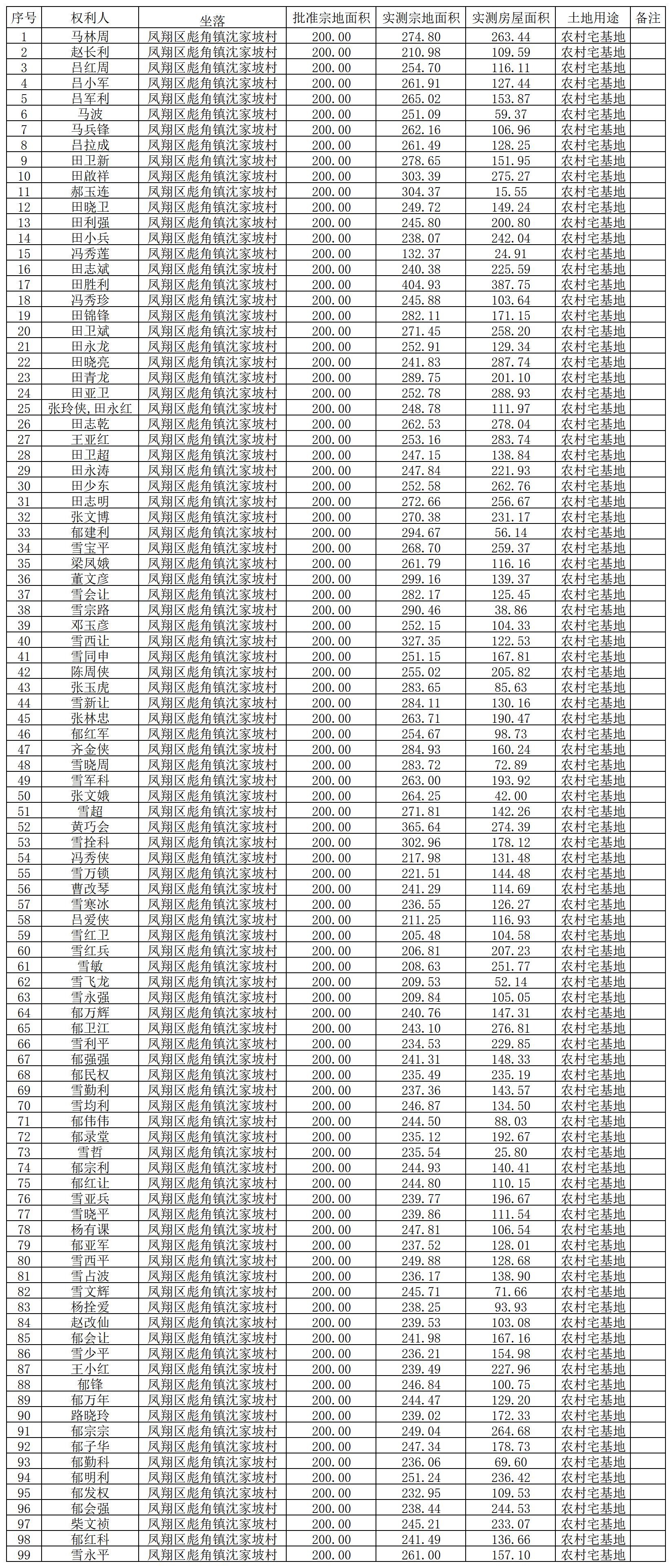 附件:彪角镇沈家坡村宅基地使用权及房屋所有权首次登记公示名单