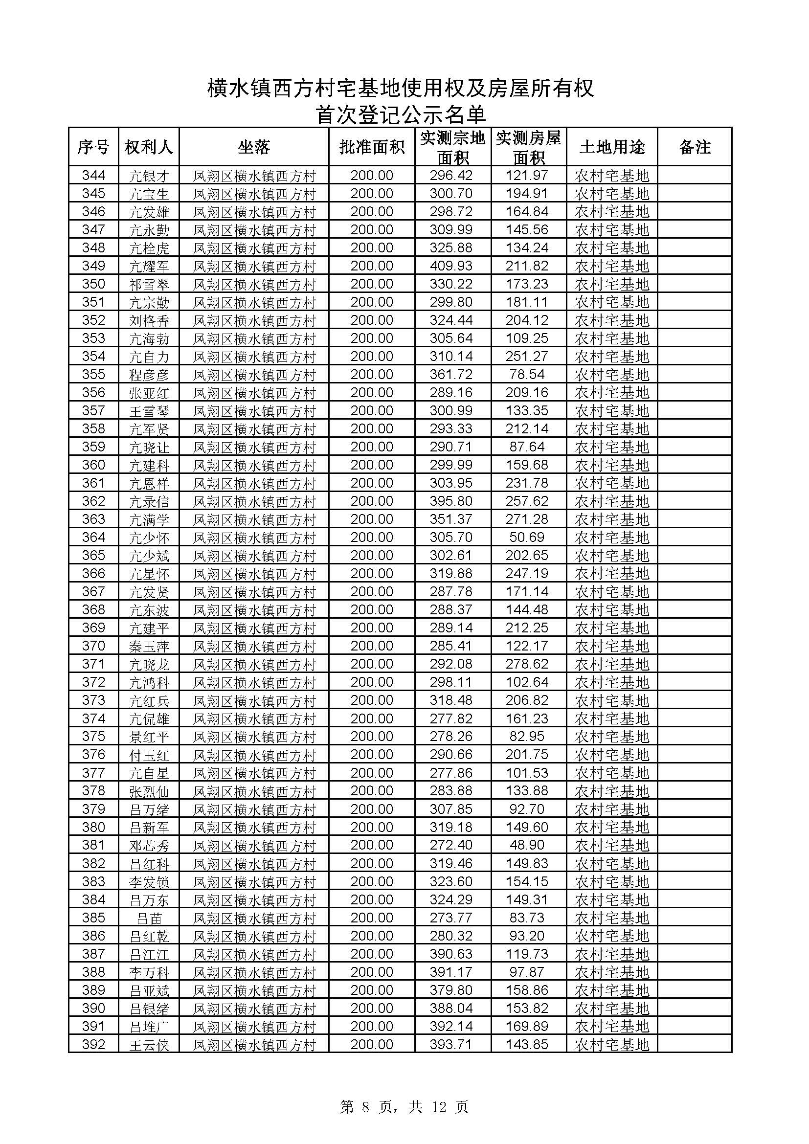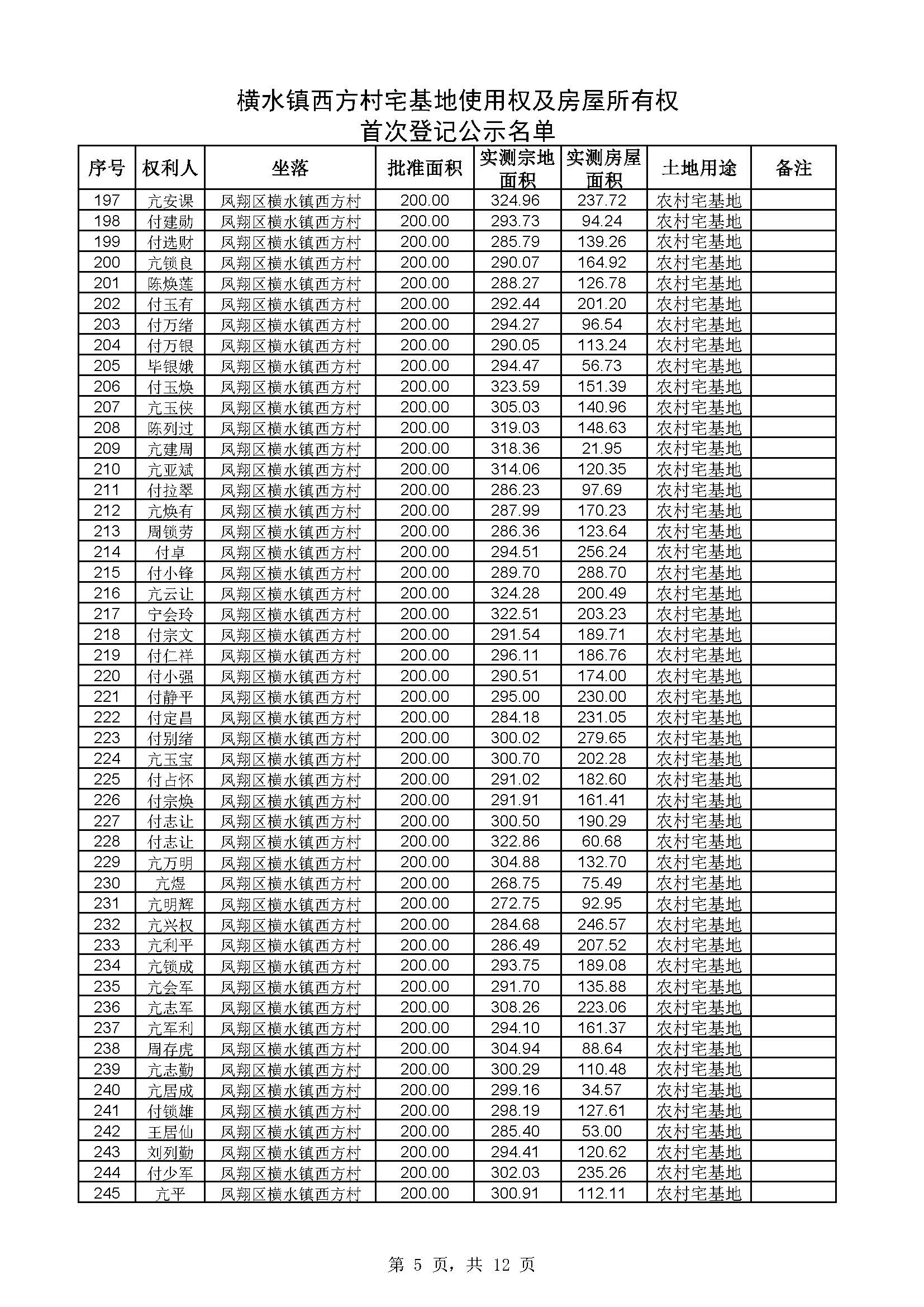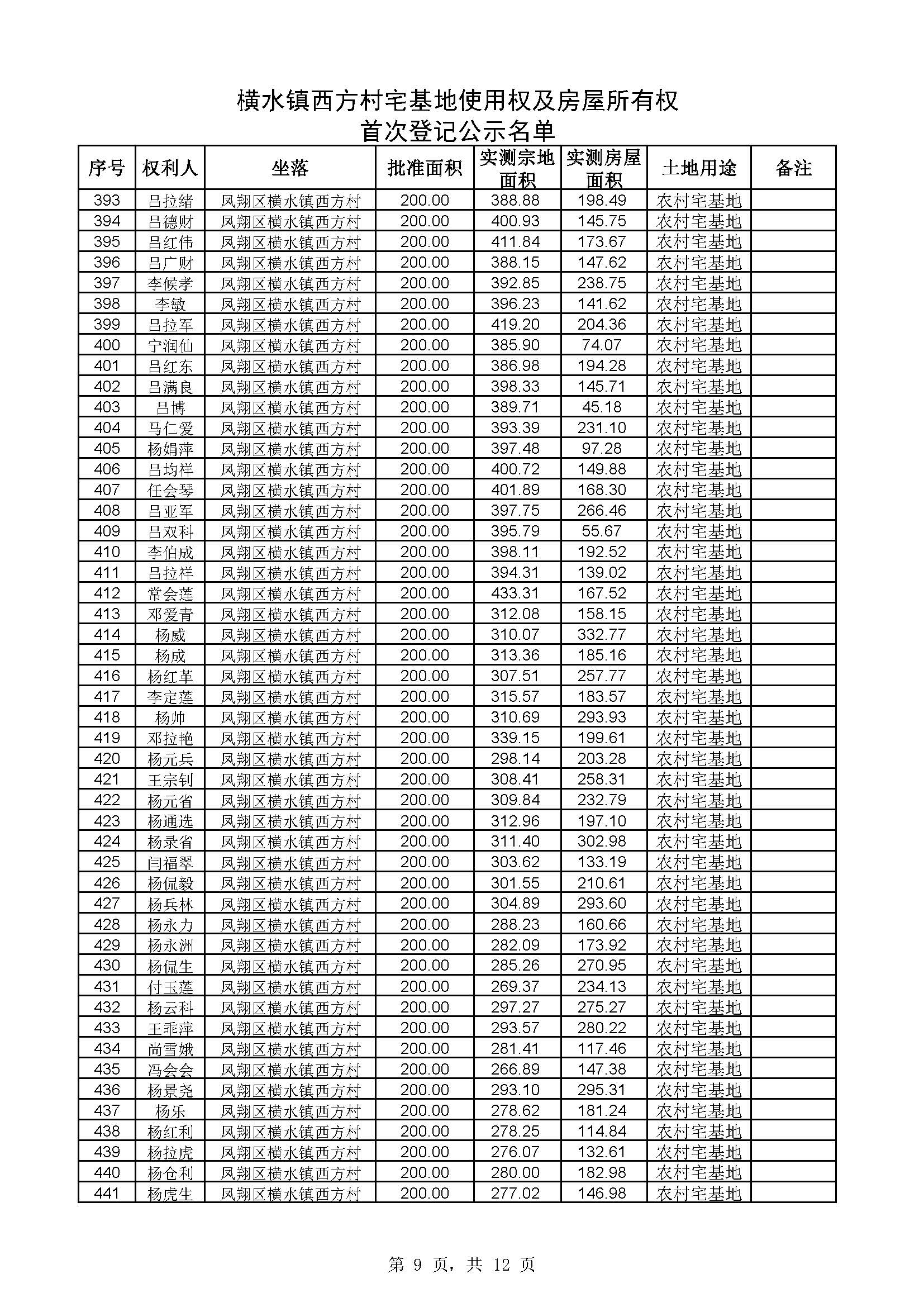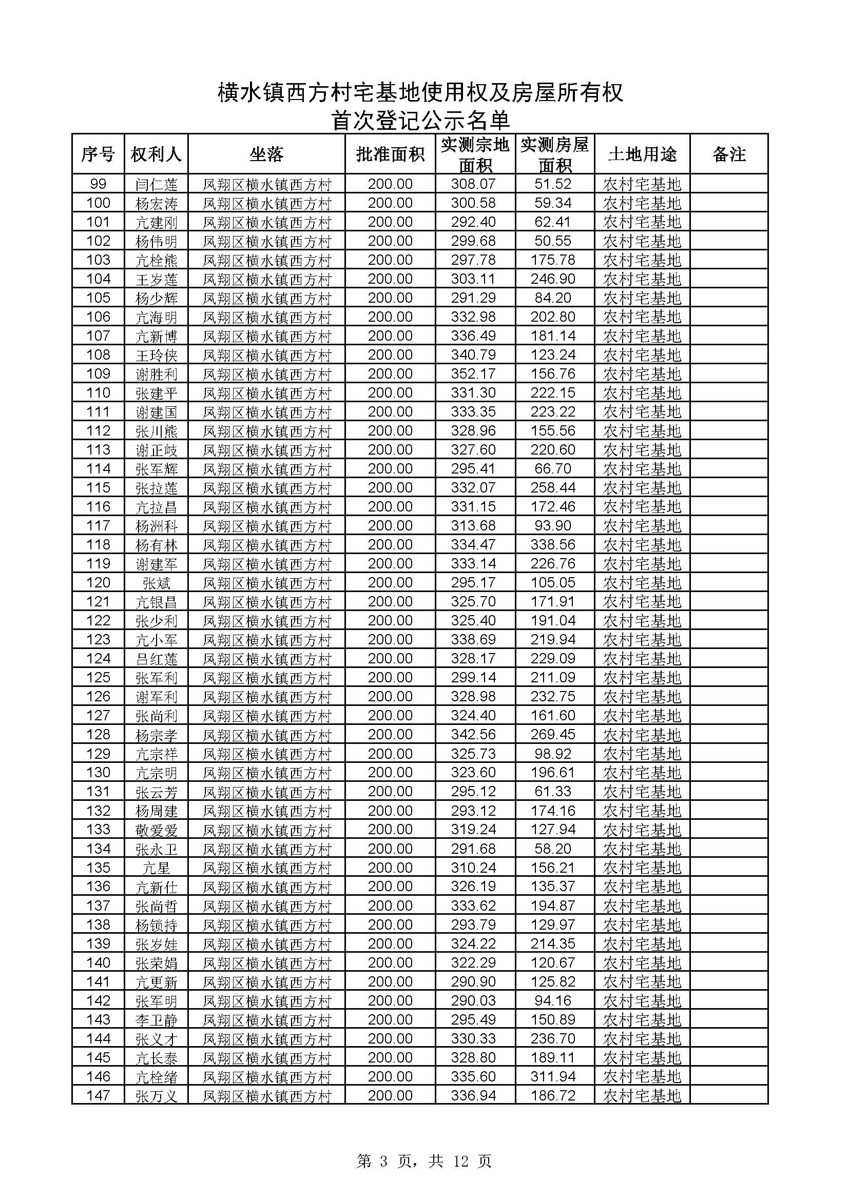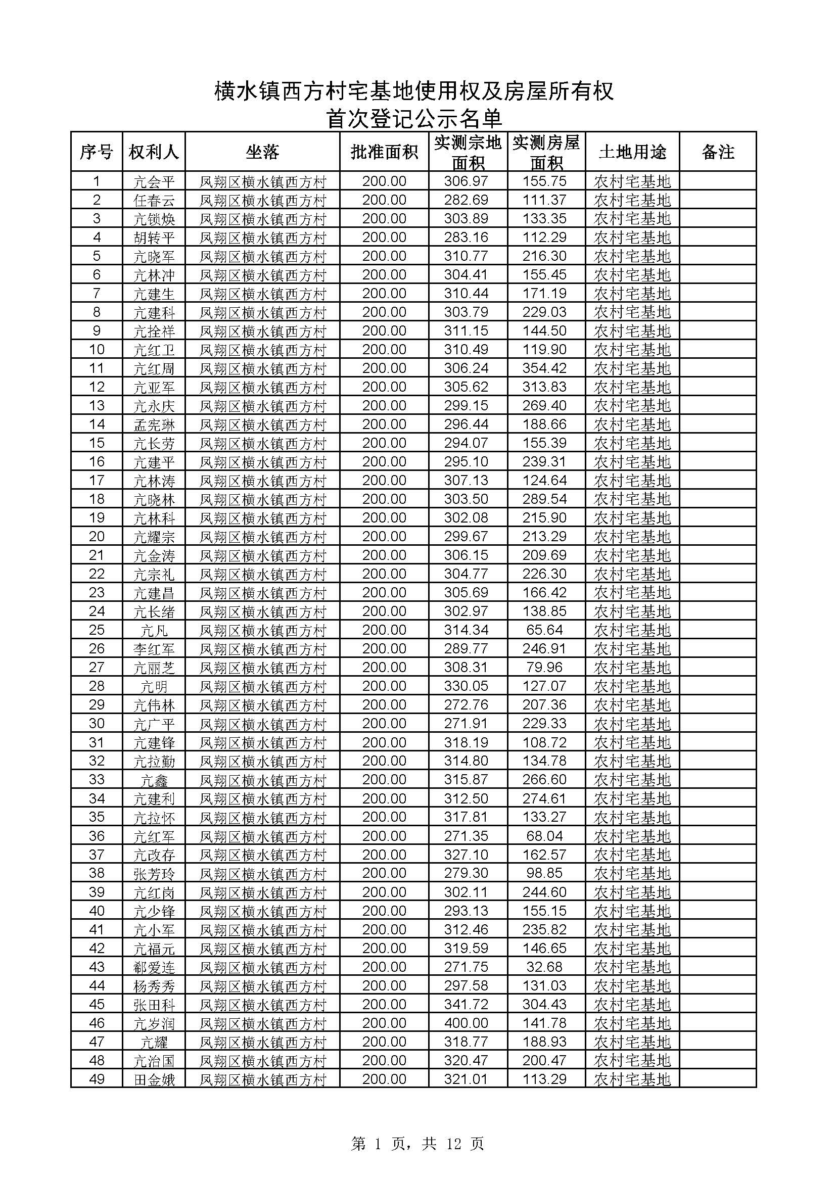 附件:横水镇西方村宅基地使用权及房屋所有权首次登记公示名单