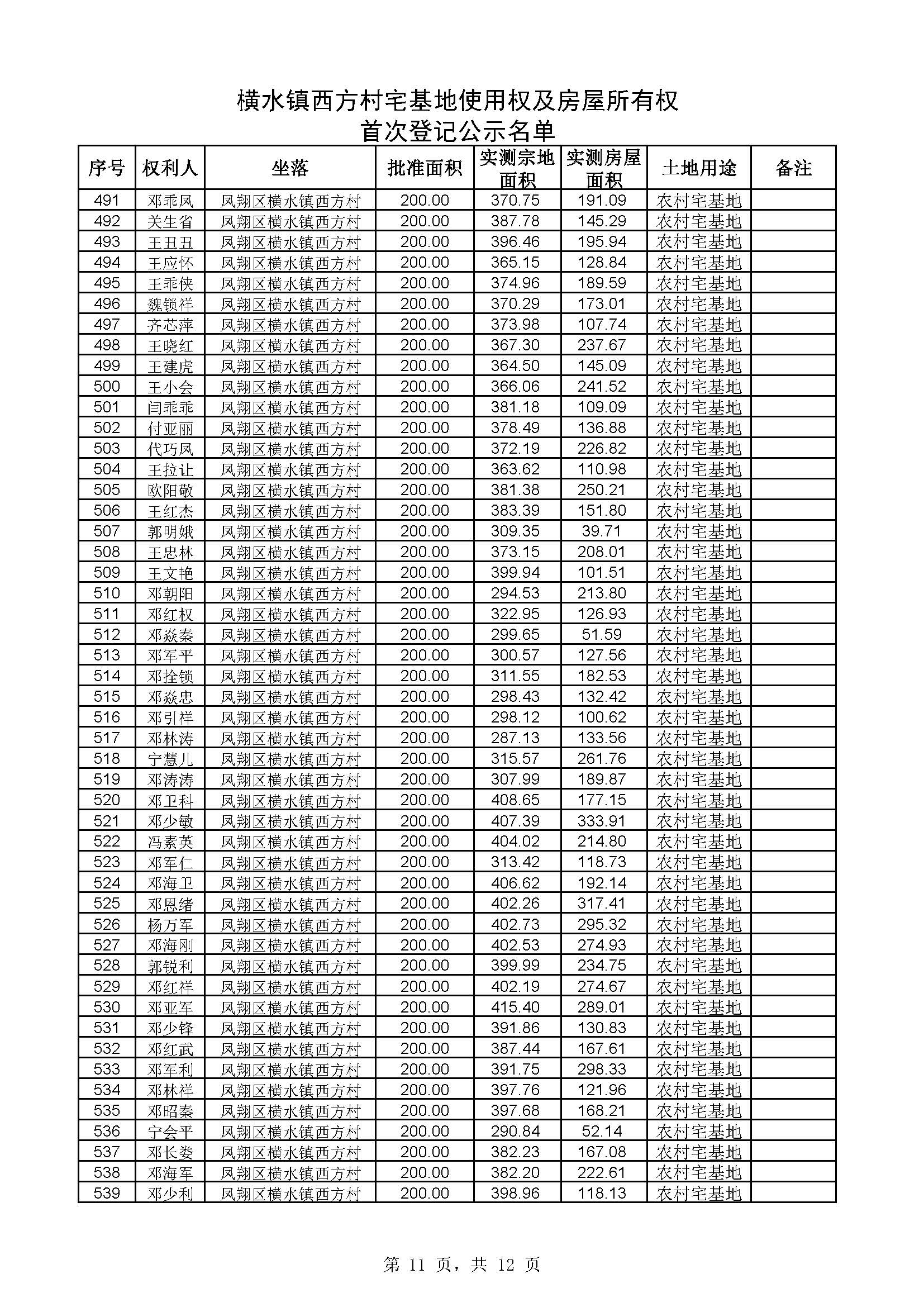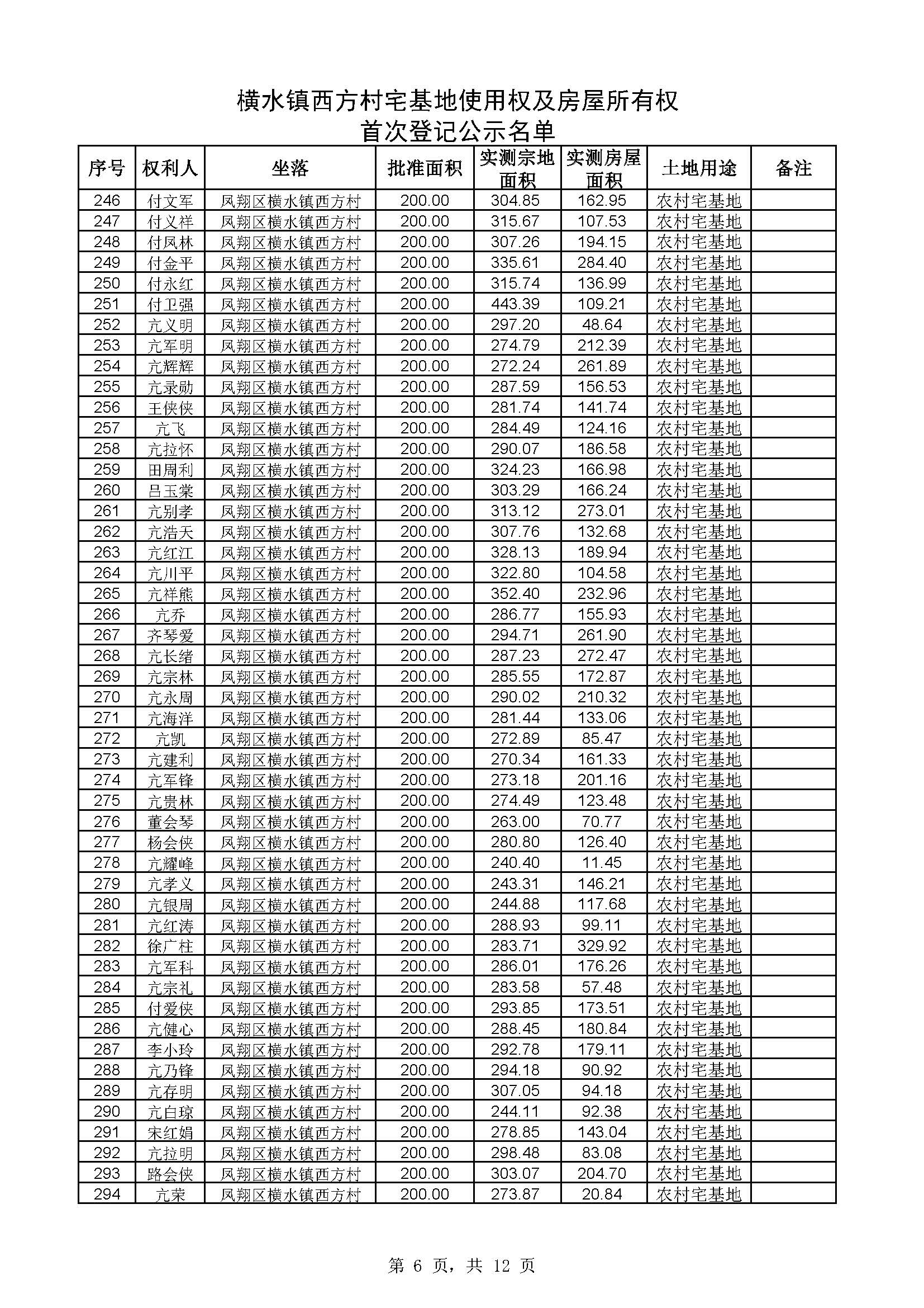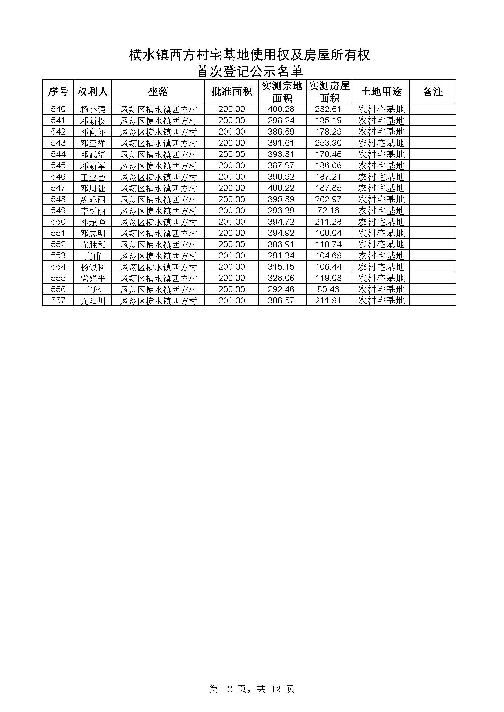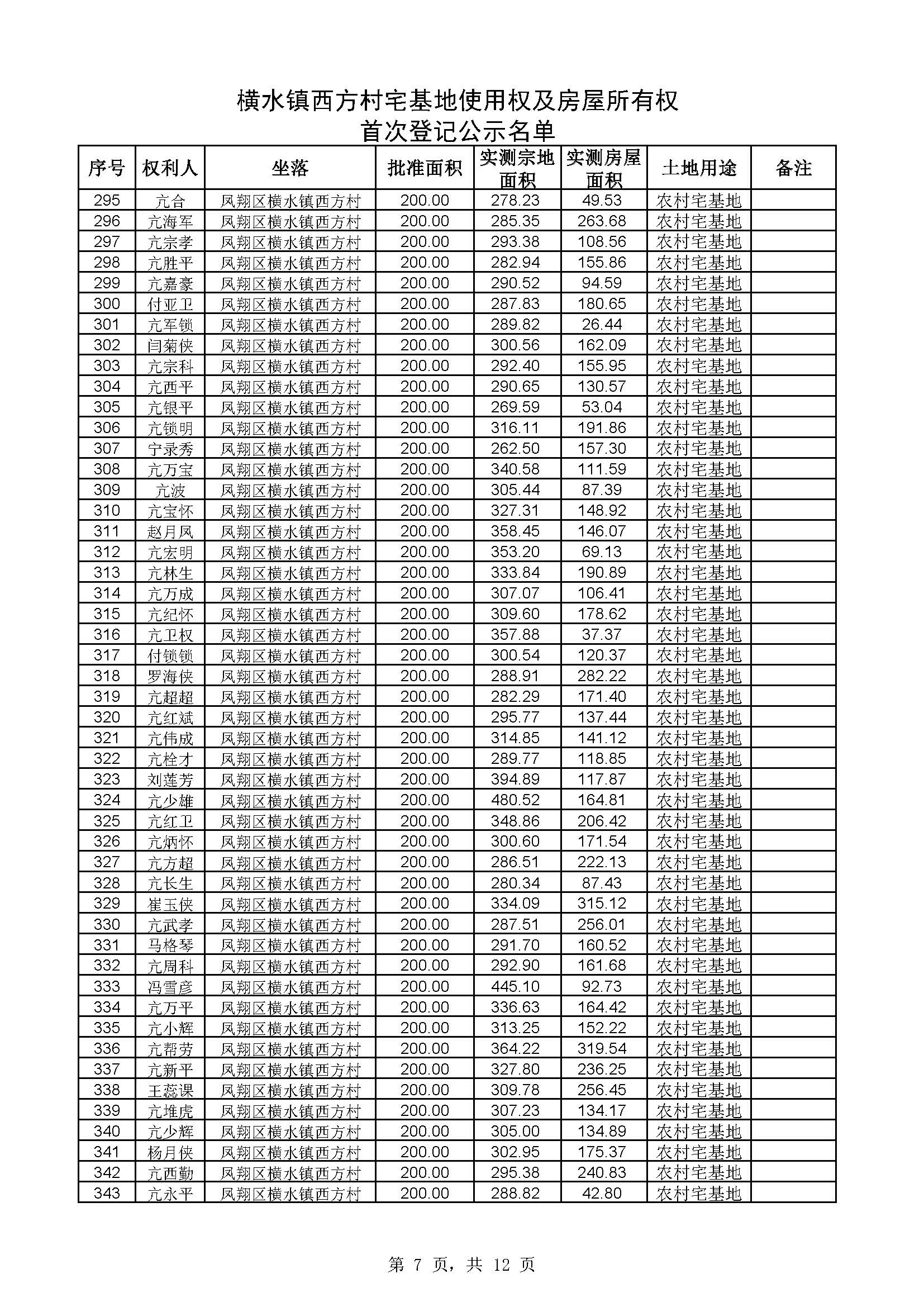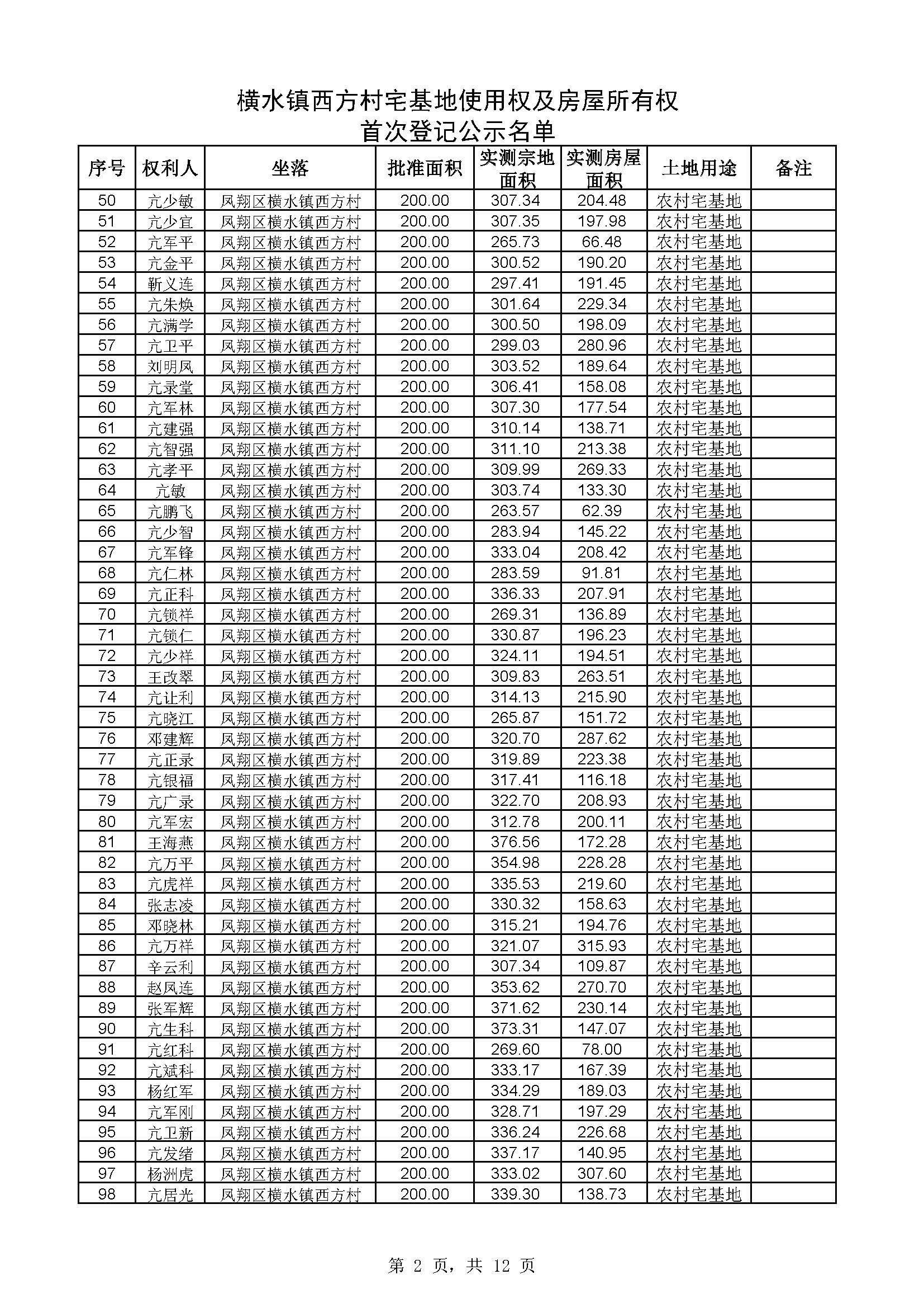 附件:横水镇西方村宅基地使用权及房屋所有权首次登记公示名单