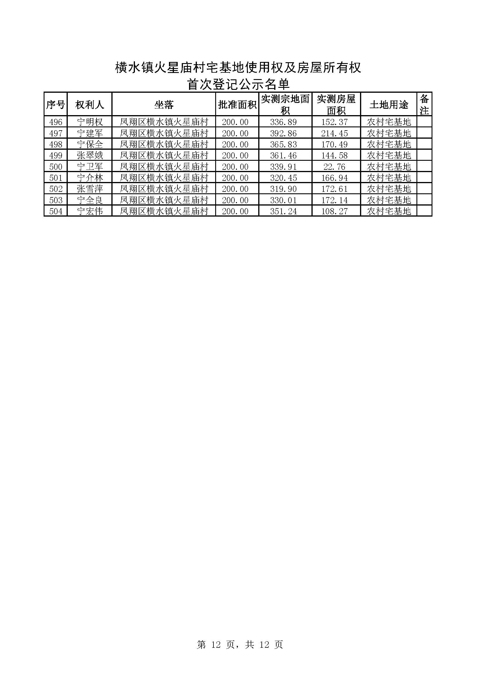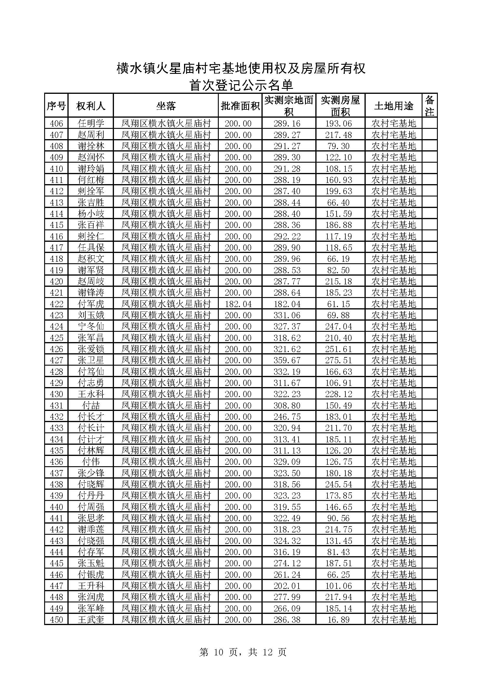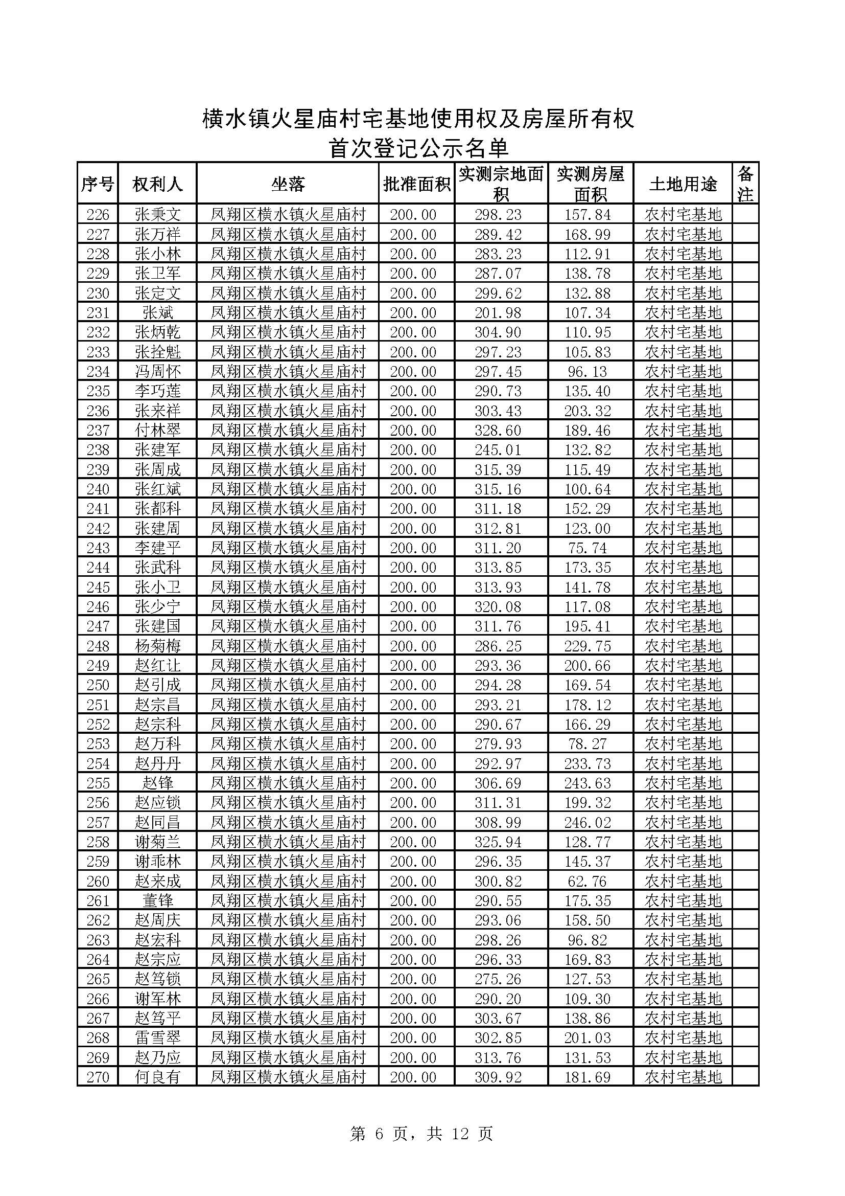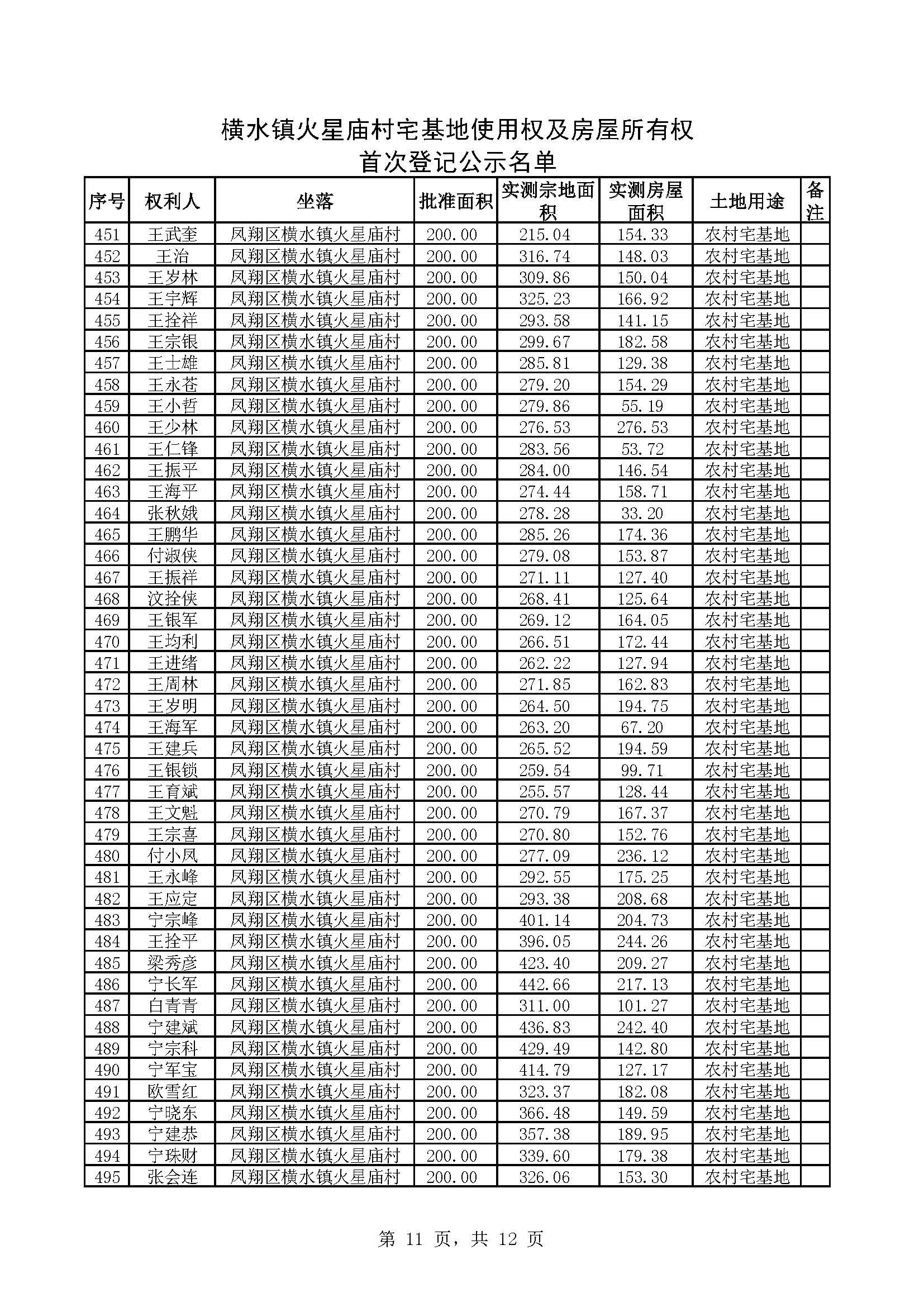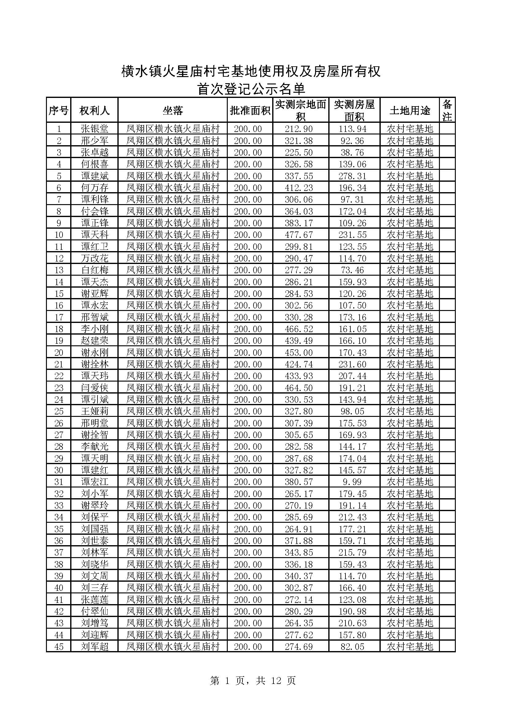 附件:横水镇火星庙村宅基地使用权及房屋所有权首次登记公示名单