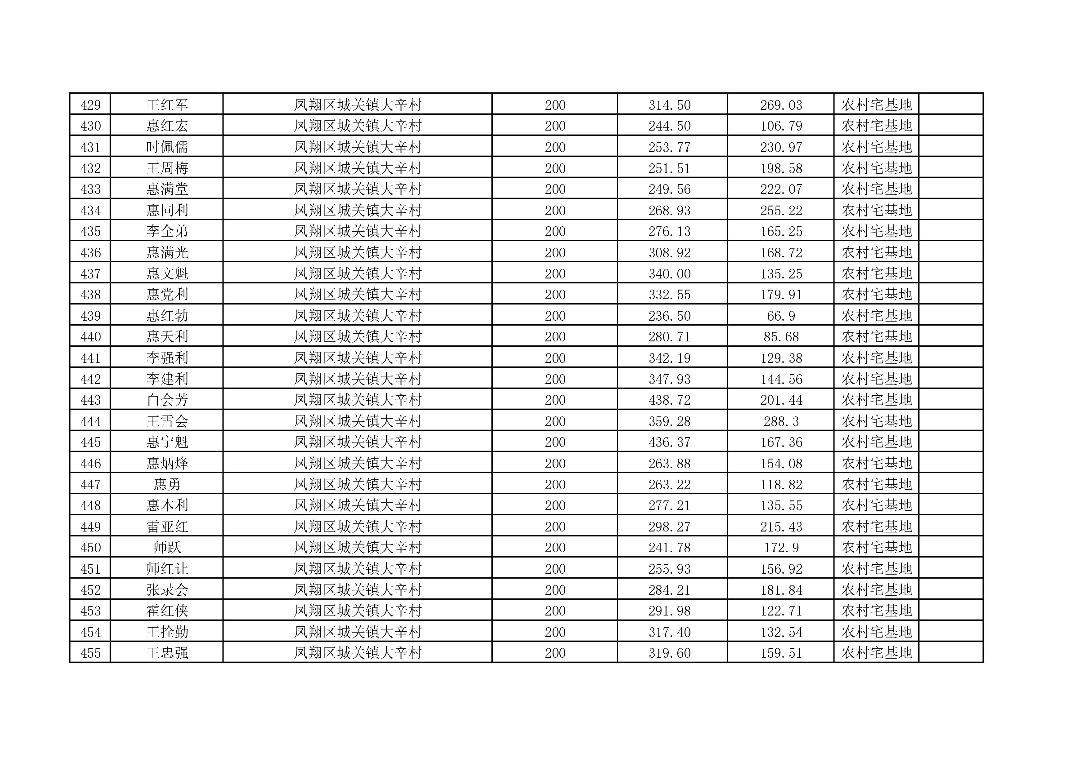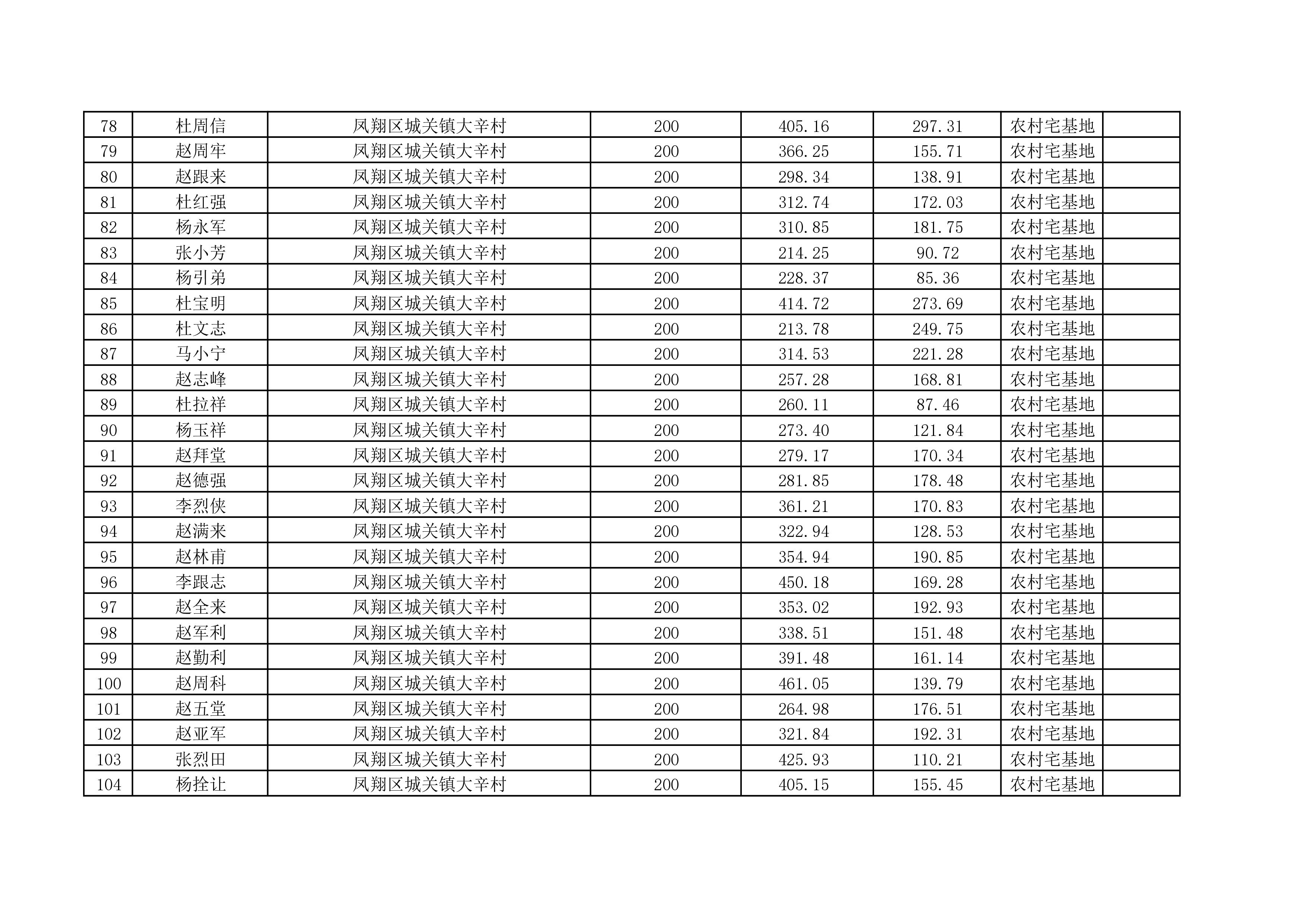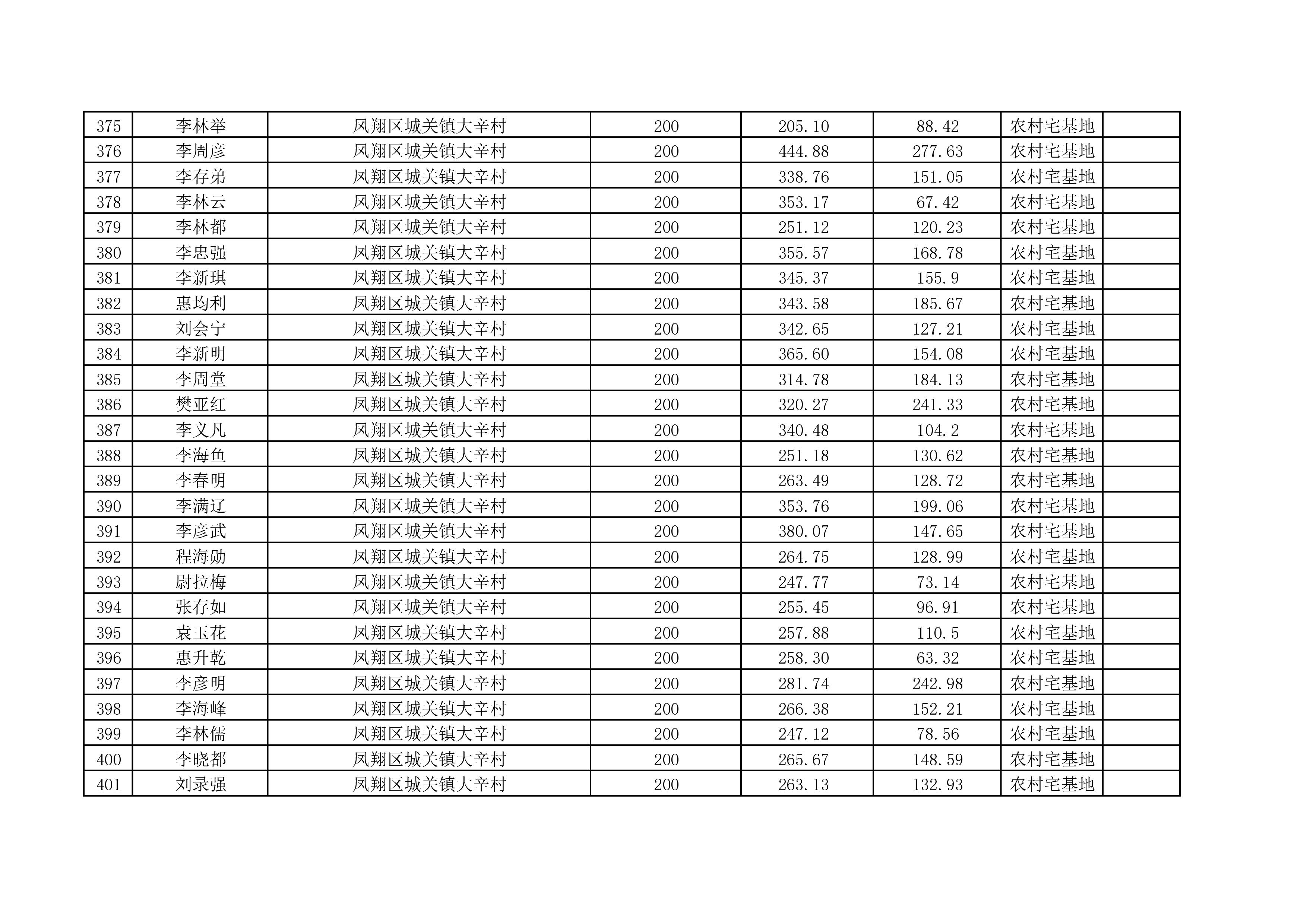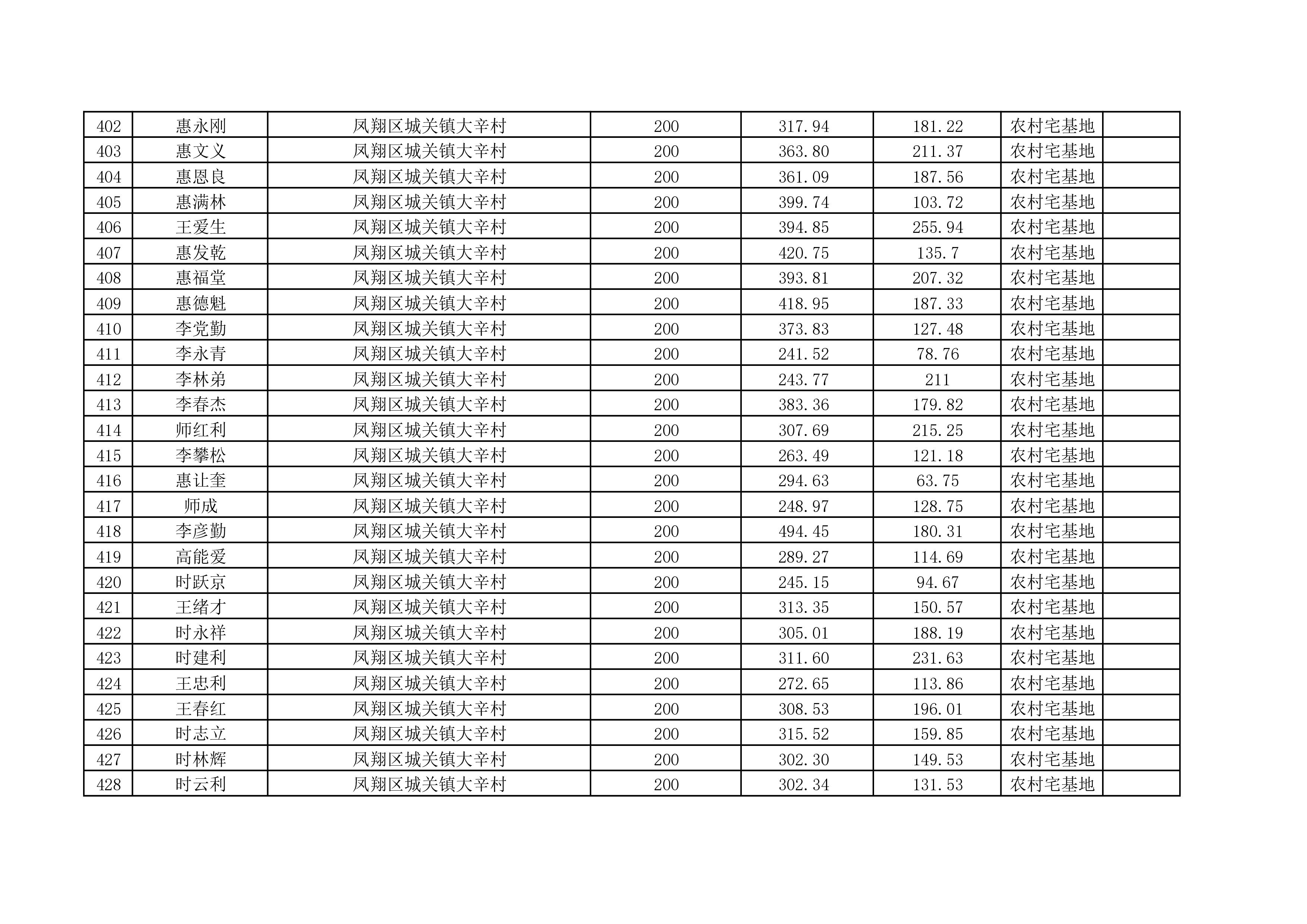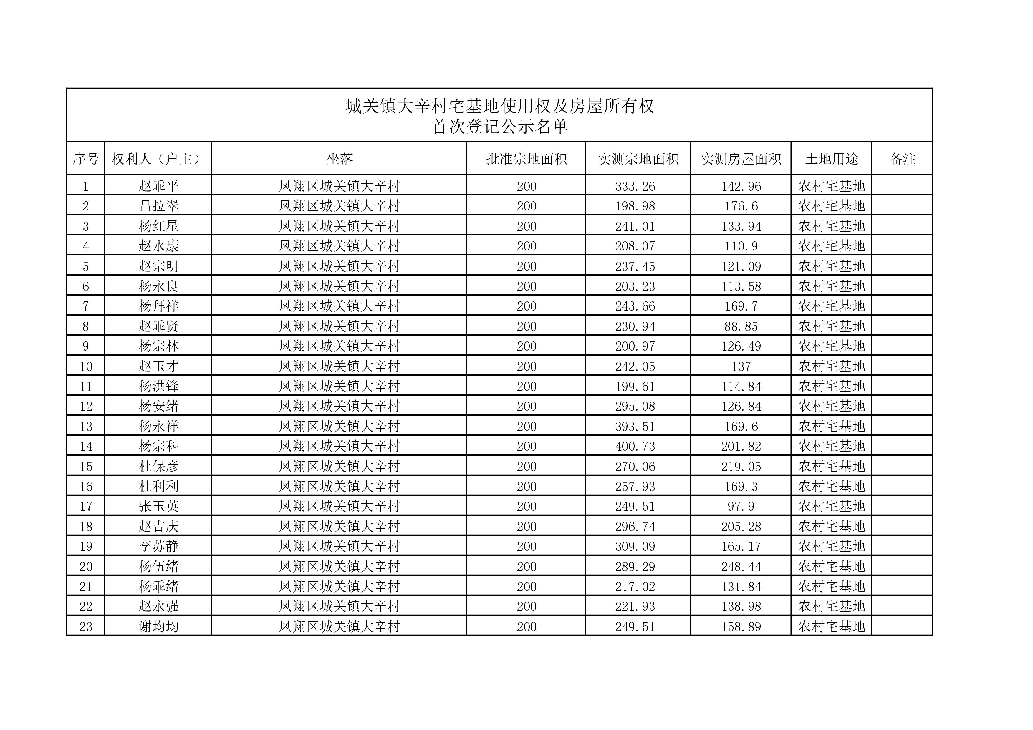 附件:城关镇大辛村宅基地使用权及房屋所有权首次登记公示名单
