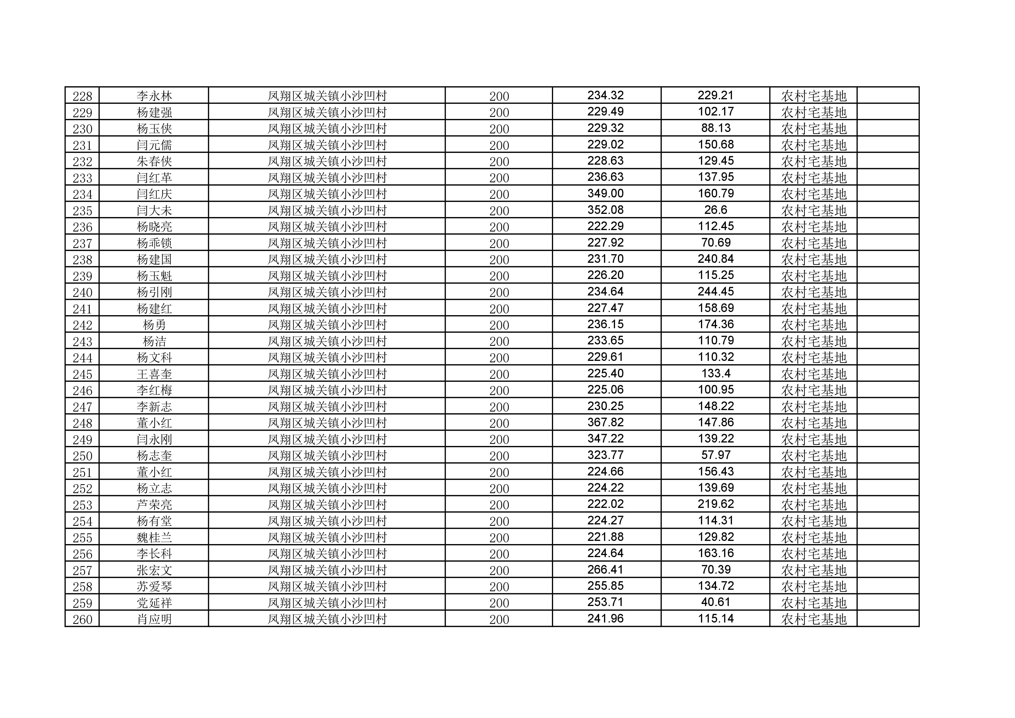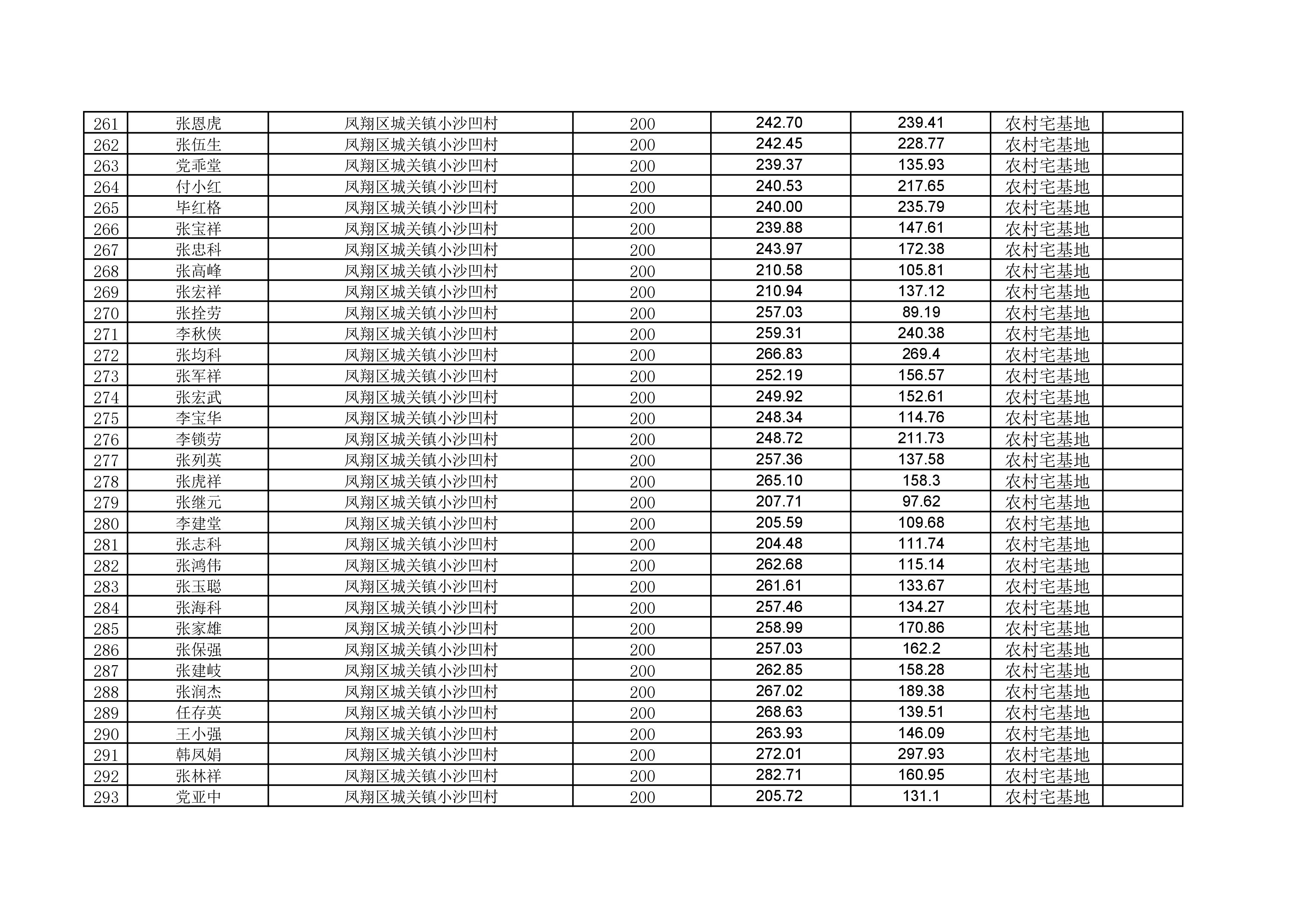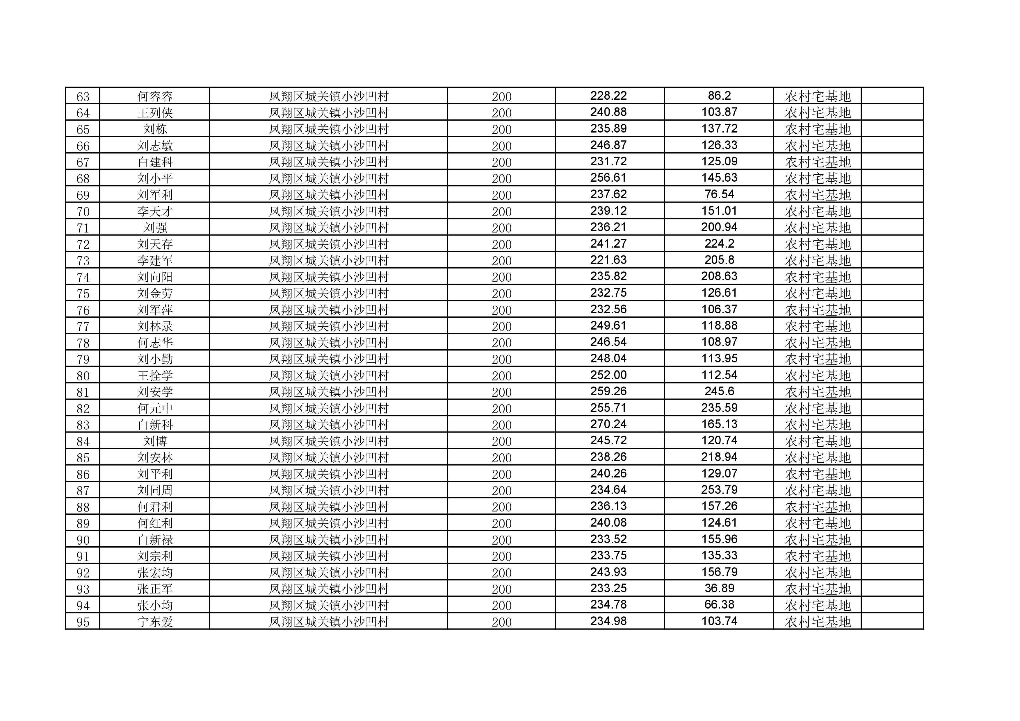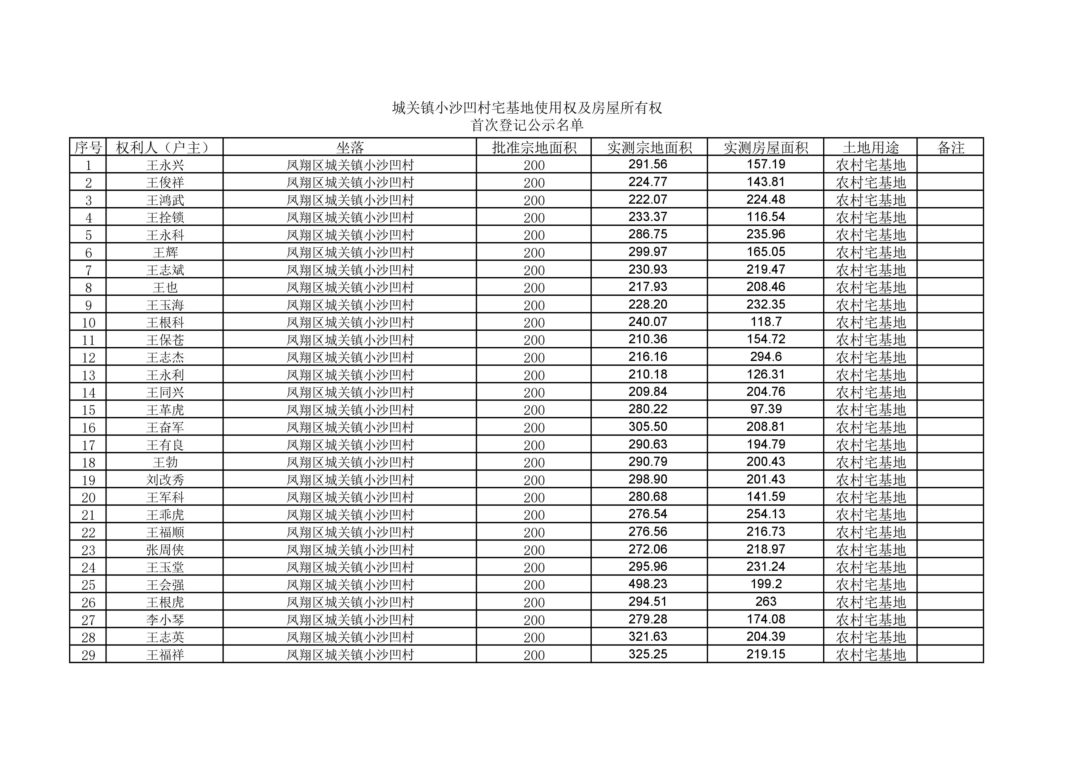 附件:城关镇小沙凹村宅基地使用权及房屋所有权首次登记公示名单