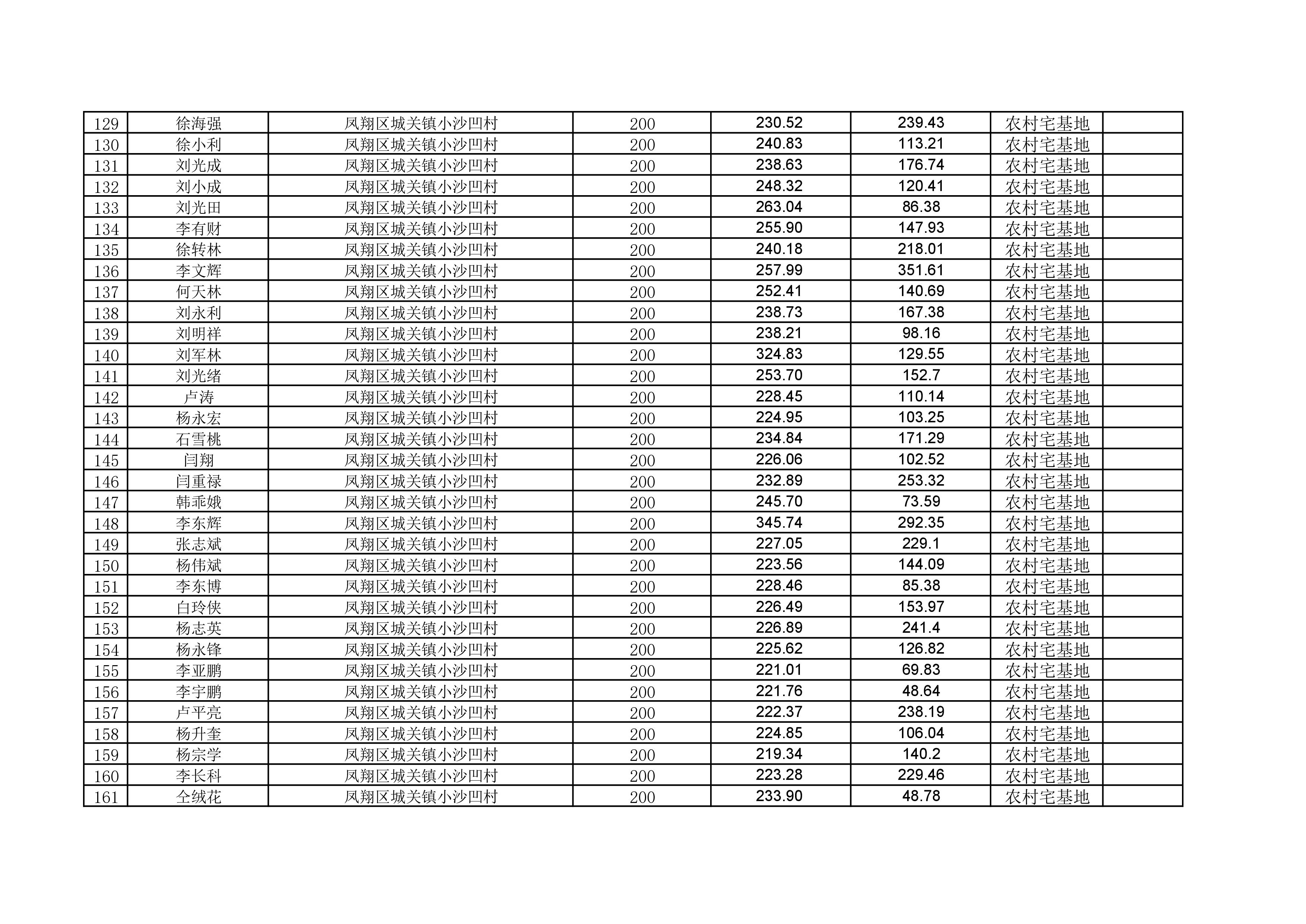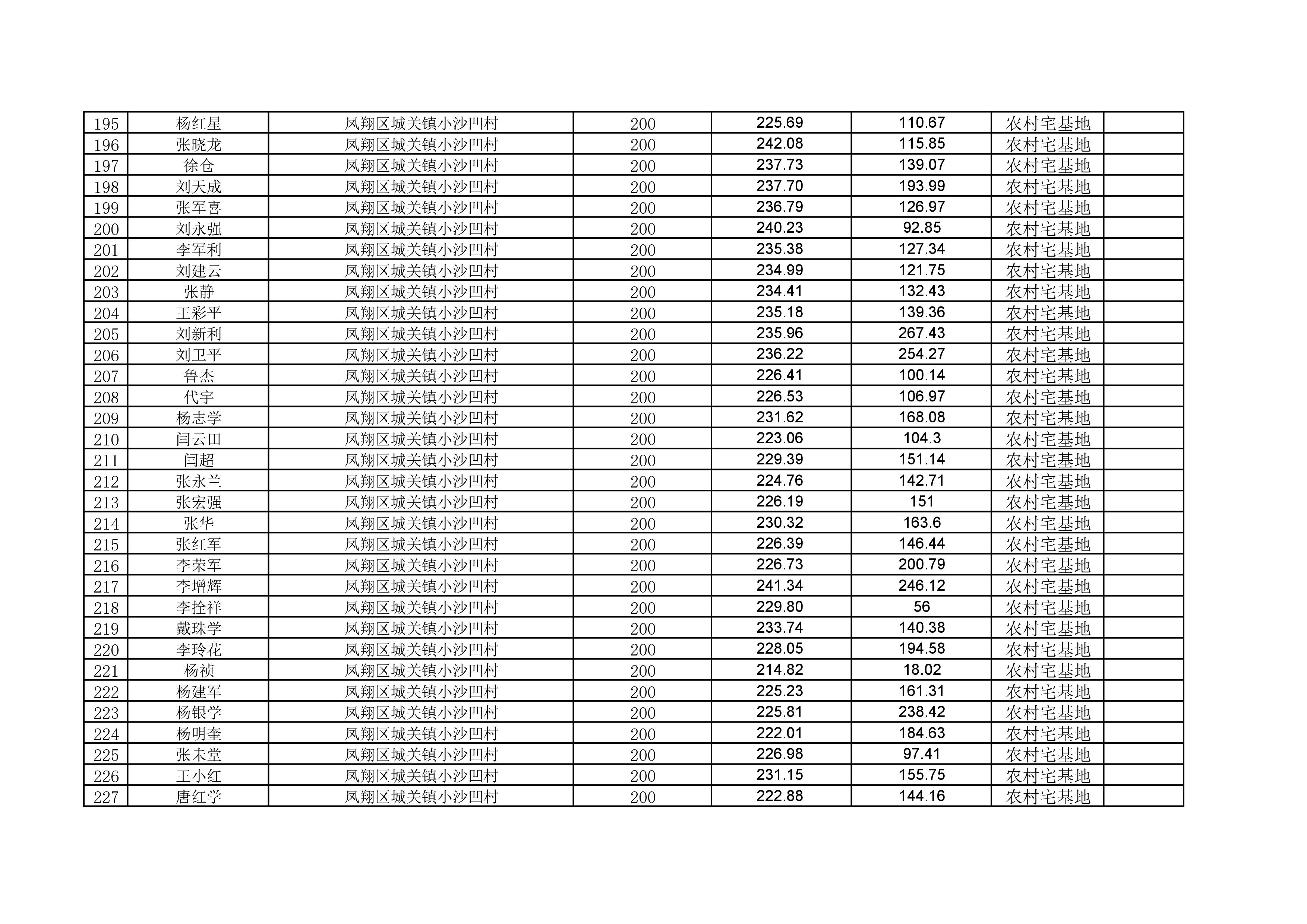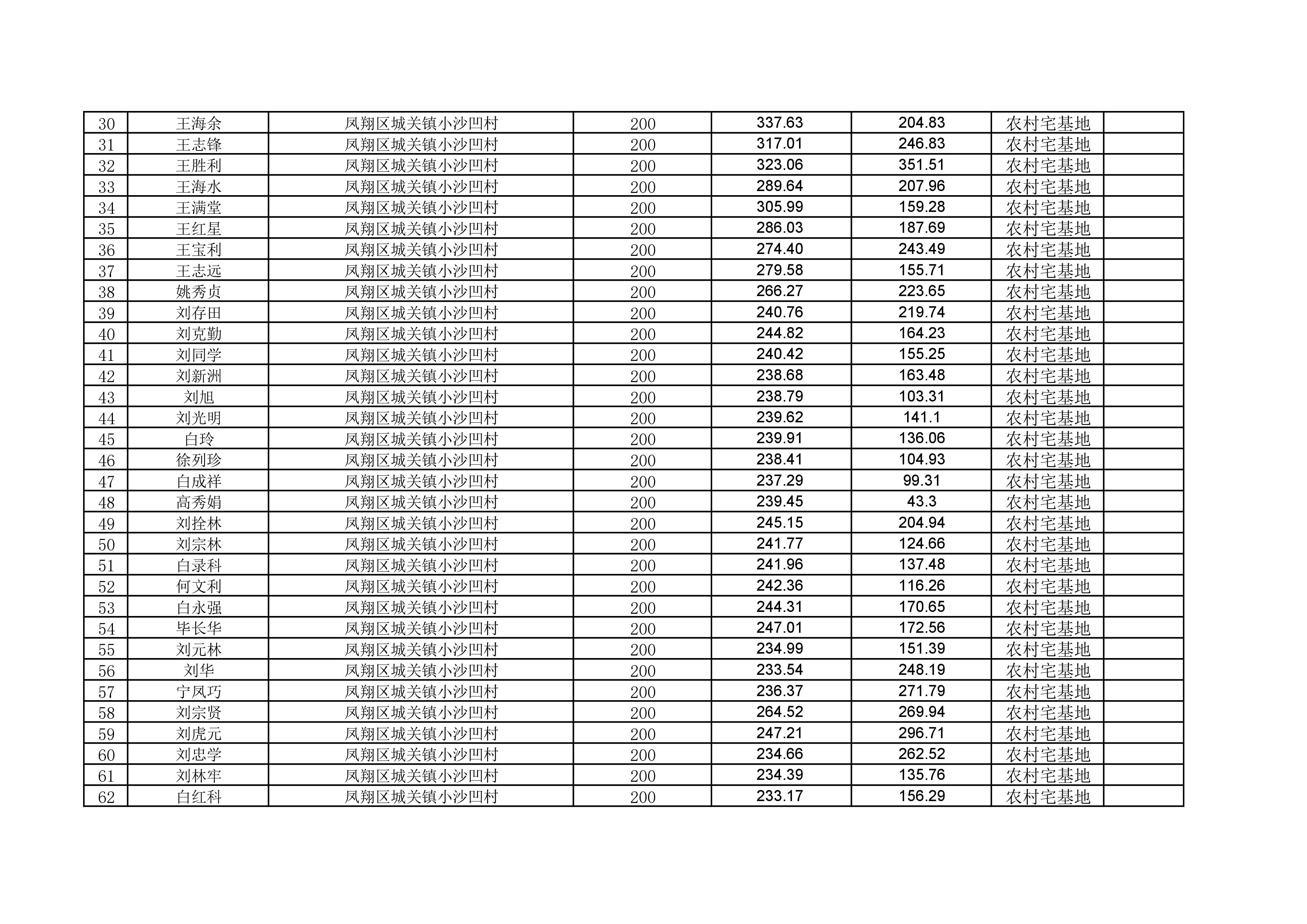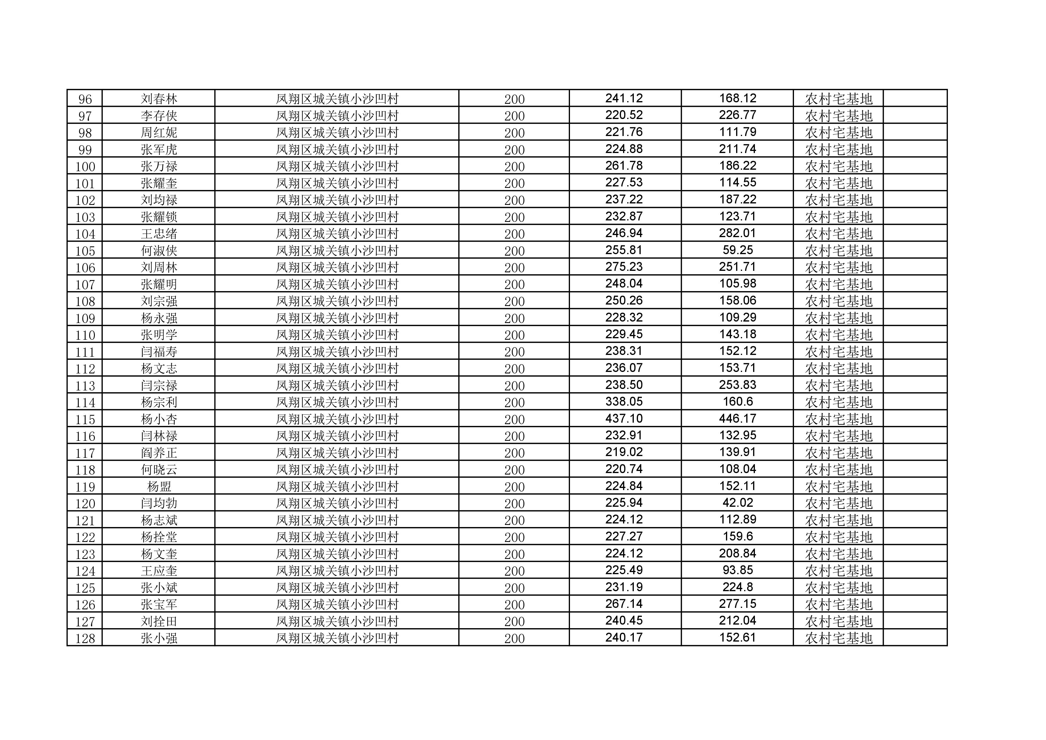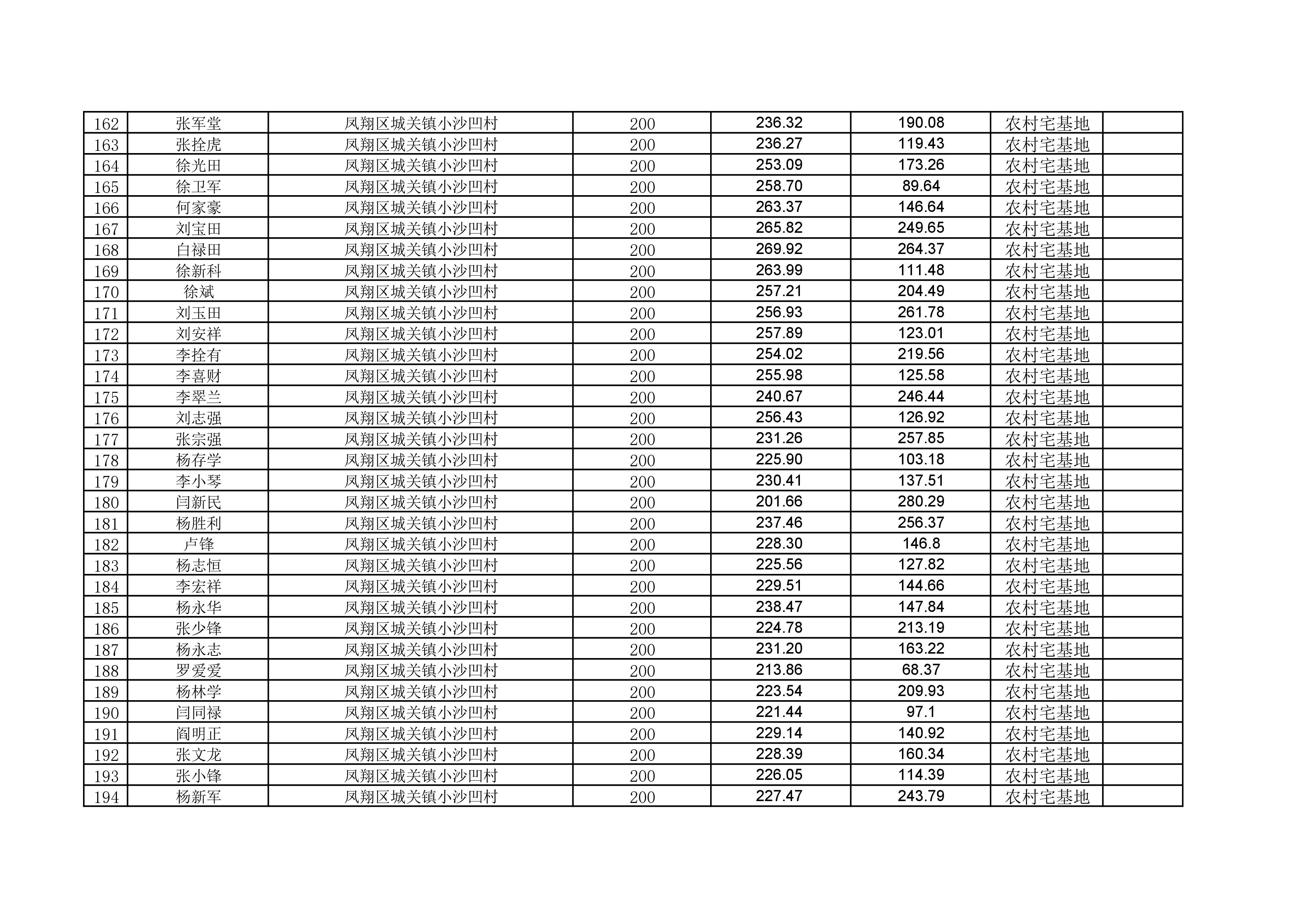 附件:城关镇小沙凹村宅基地使用权及房屋所有权首次登记公示名单