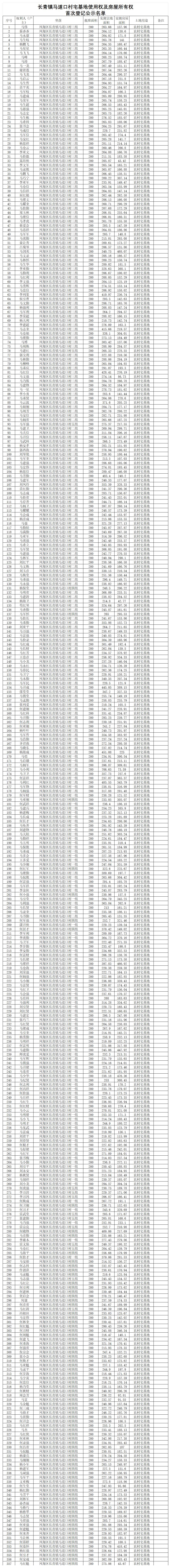 附件:长青镇马道口村宅基地使用权及房屋所有权首次登记公示名单