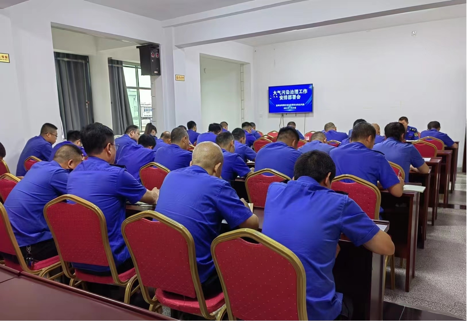3.区城市管理综合执法大队召开大气污染防治工作部署会,会议上对环保大气领域相关的建筑施工扬尘污染、餐饮服务业油烟污染、露天烧烤污染、城市焚烧沥青塑料垃圾等相关工作统一安排。