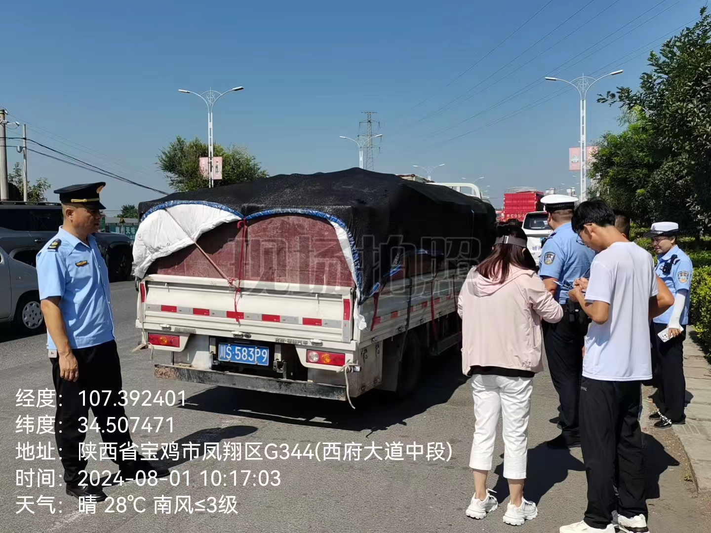 2.区生态环境局联合区环境监测站、公安交警大队、交通执法大队在西府大道中段开展重型柴油货车路查路检抽测,严厉打击车辆冒黑烟上路行驶,助力臭氧攻坚行动。
