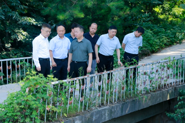 王宏强一行先后到东风水库库尾、第一污水处理厂及饮凤苑湿地公园,详细了解水库闸门修复、污水处理设施运行、雨污分流、湿地公园水质等相关情况。
